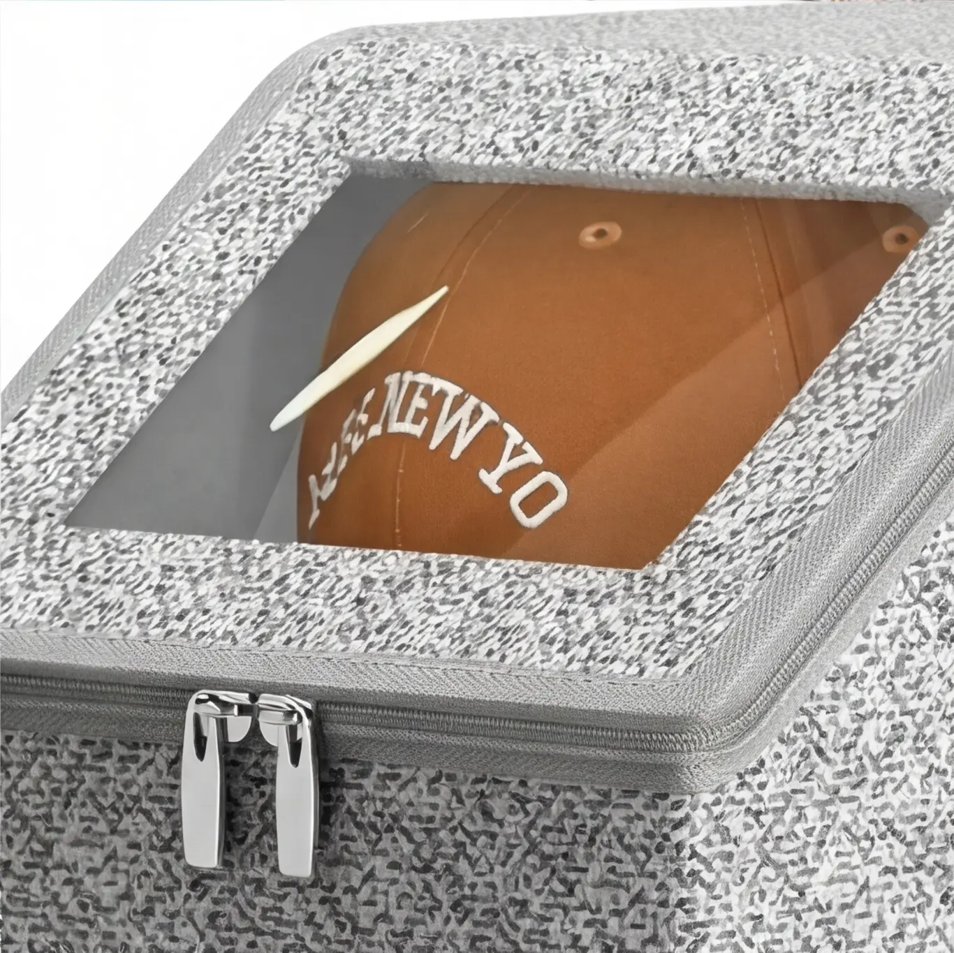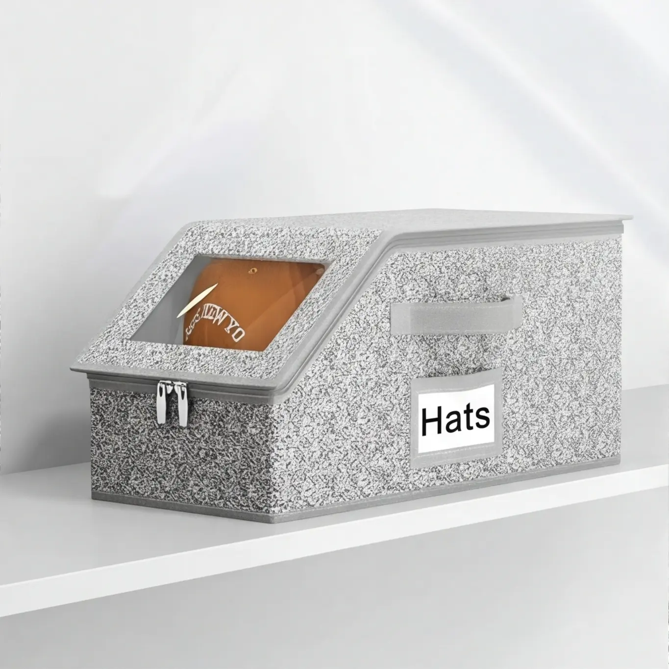 Space-Saving Hat Holder with Label Pocket Transform your cluttered closet with this compact hat storage solution! The slanted clear window lets you grab your favorite hat in seconds, label pocket for easy organization, and sturdy zippers keep your hats secure. Ideal for small spaces, apartments, and dorms, the top-rated hat holder for closet organization!