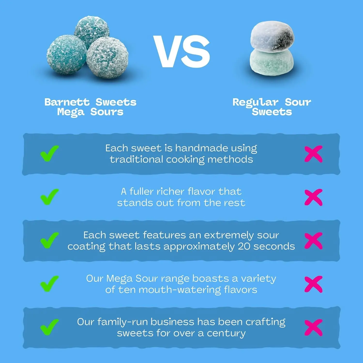Barnetts Mega Sour Raspberry Candy is one of the world’s most extreme sour candies, specially made for people who love bold and intense flavors. These traditional British hard sweets are handmade using classic copper pan methods, giving them a rich and authentic taste.