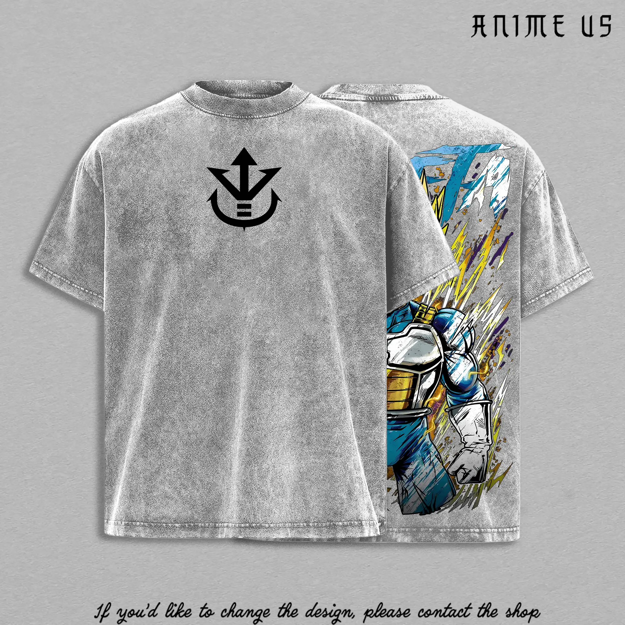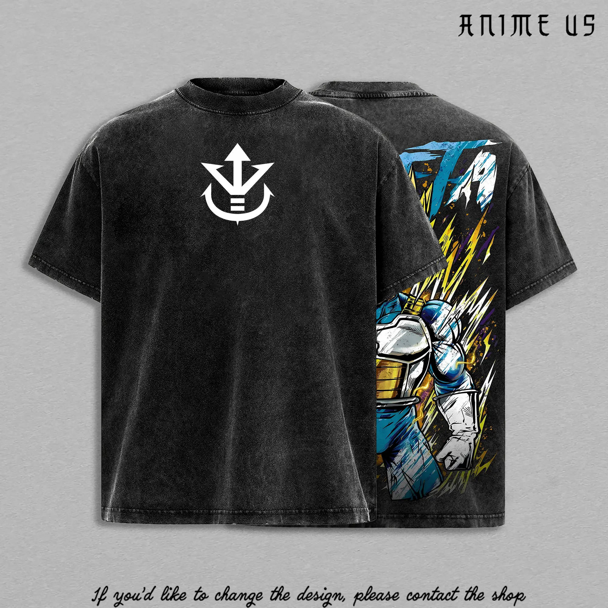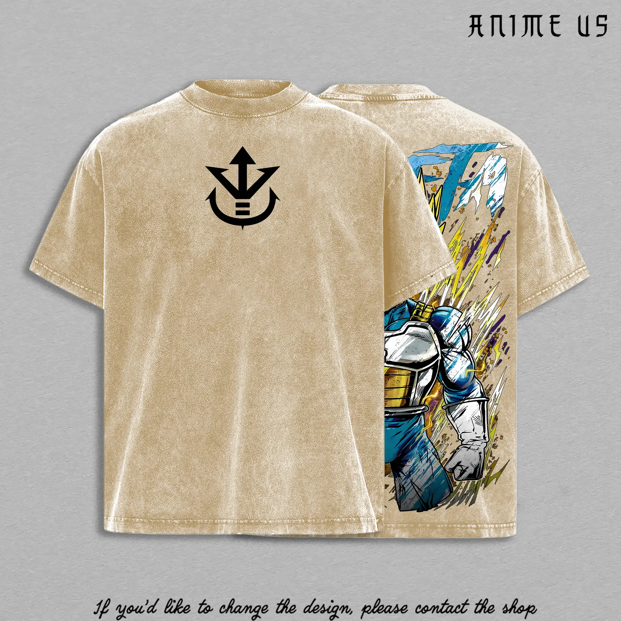 Golden Saiyan Warrior Saiyan Prince Super Power Anime Fighter Shirt Washed Heavy Cotton Tee Streetwear Graphic Back Cool Warrior Design Inspired Dragon Hero