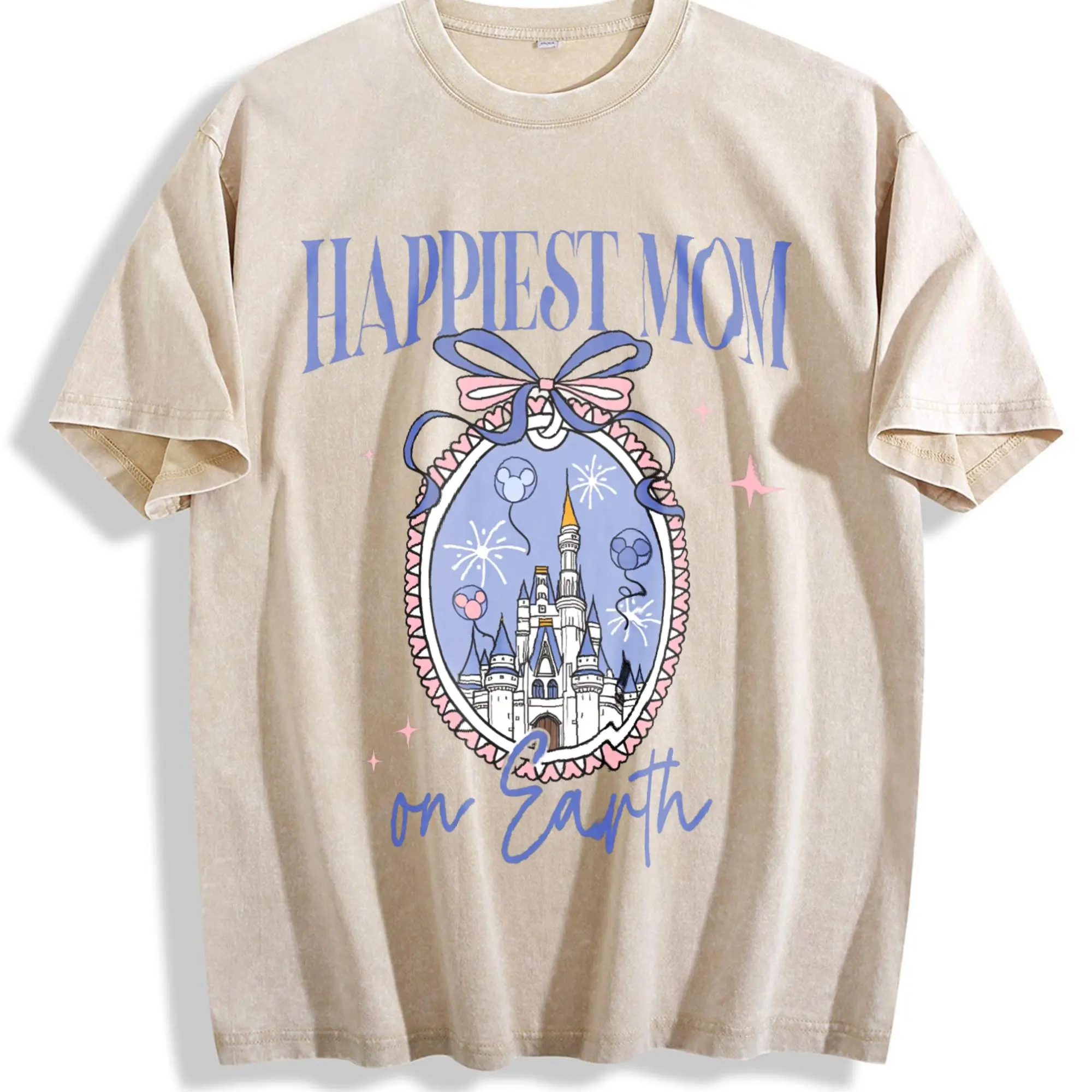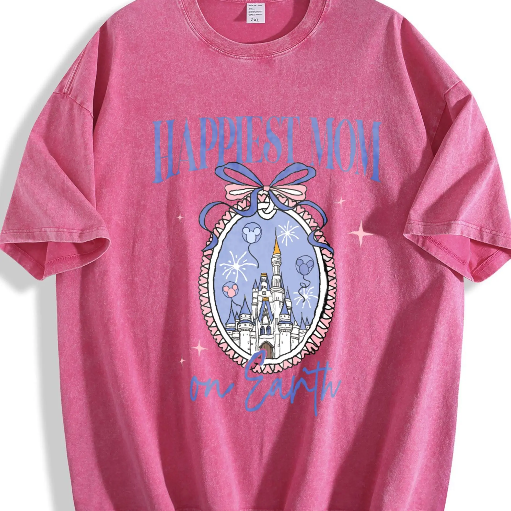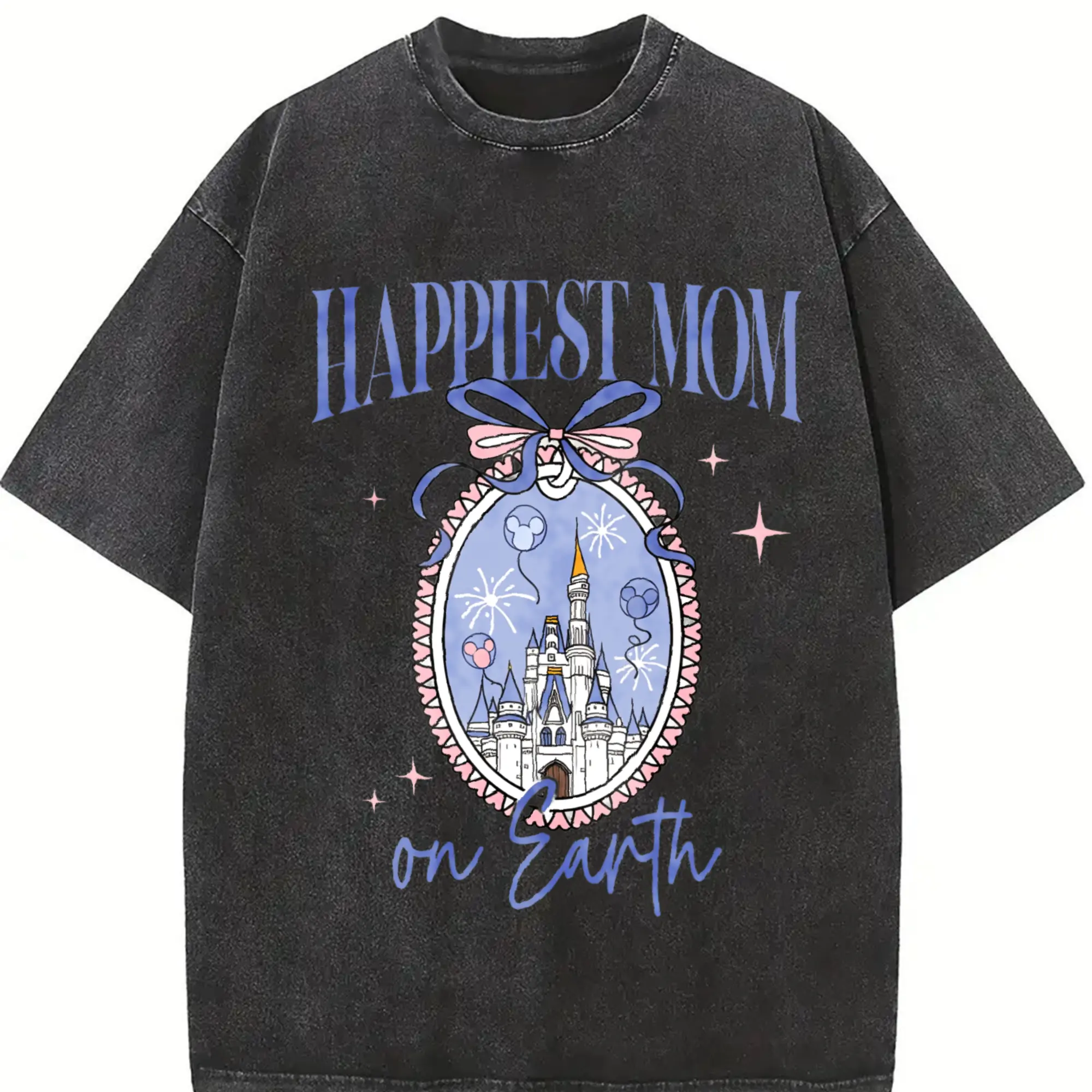 Youth and Adult Magic Kingdom Castle Coquette Bow T-shirt, Happiest Mom On Earth Shirt, Magic Kingdom Mama Tee, Mother's Day Gift For Mom, Magic Kingdomland Family Trip Outfit