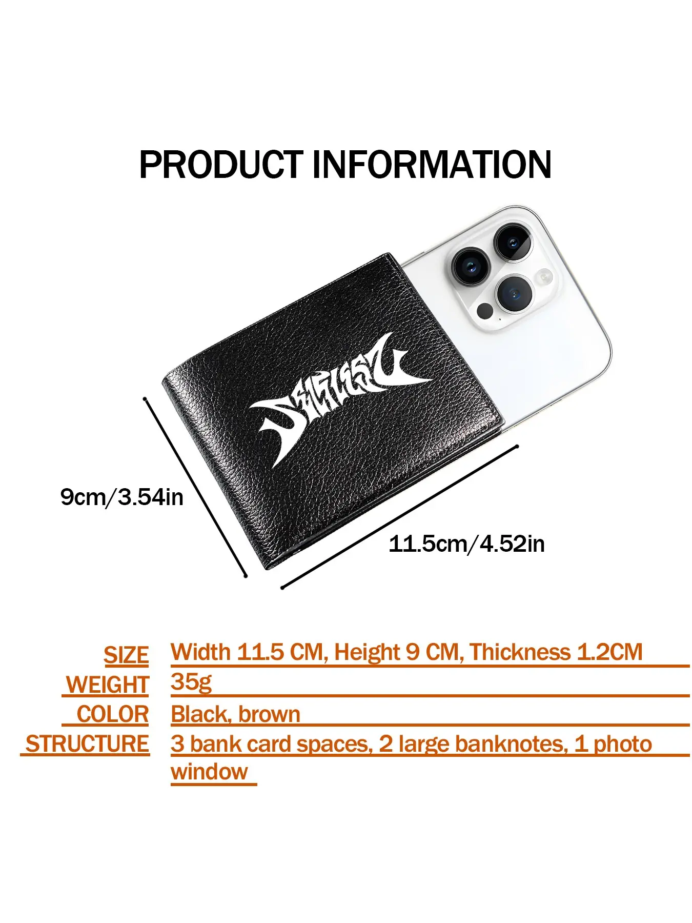 Neutral Gothic Print Foldable Wallet, Unisex Street Style Card Holder, PU Leather, Casual, Ideal for Daily Use, Travel, Birthday Gift