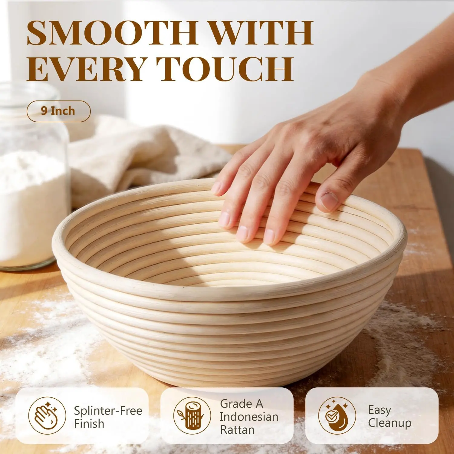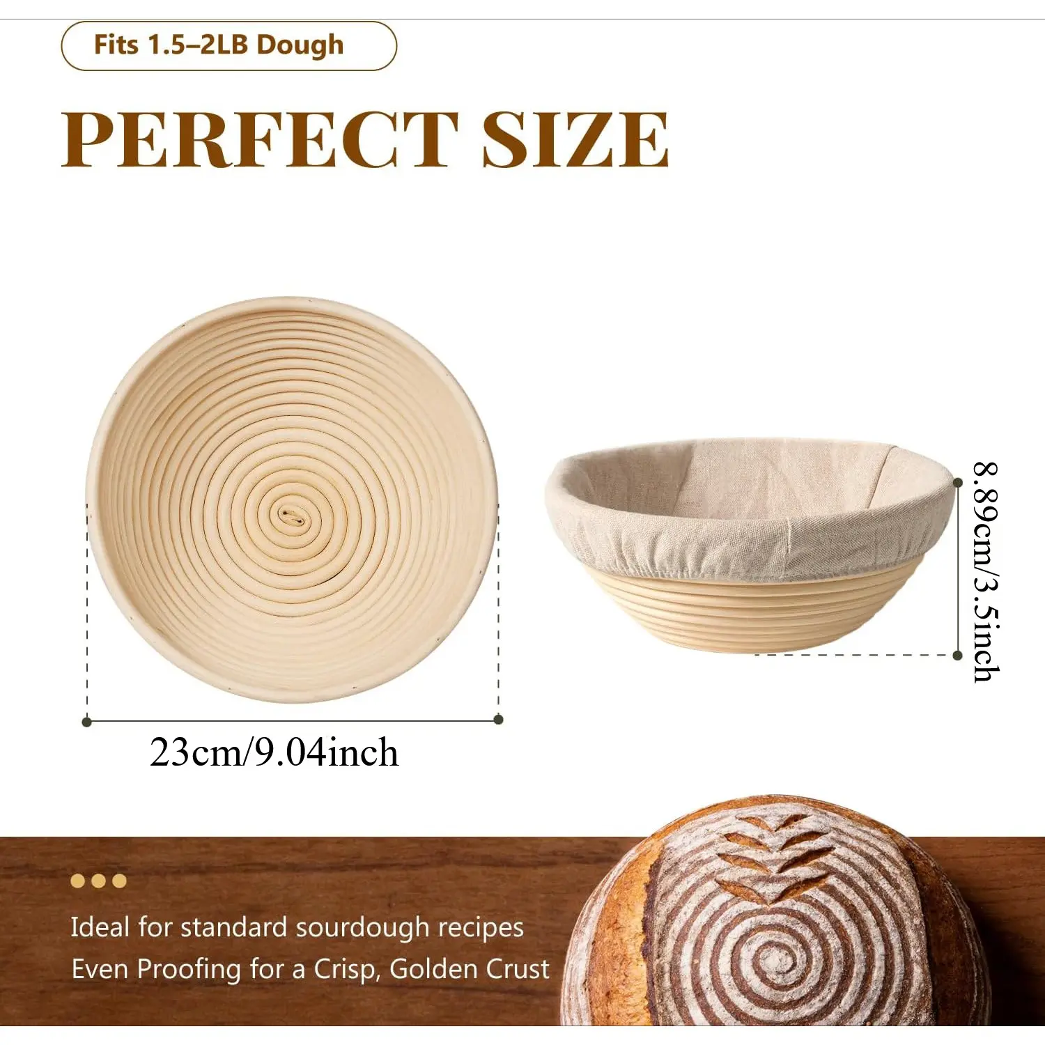 2 Pack Banneton Bread Proofing Baskets for Sourdough, 9 Inch Round Natural Rattan Proofing Basket for Dough Rising, Bread Proofing Bowl Sourdough Bread Baking Supplies for Home Bakers