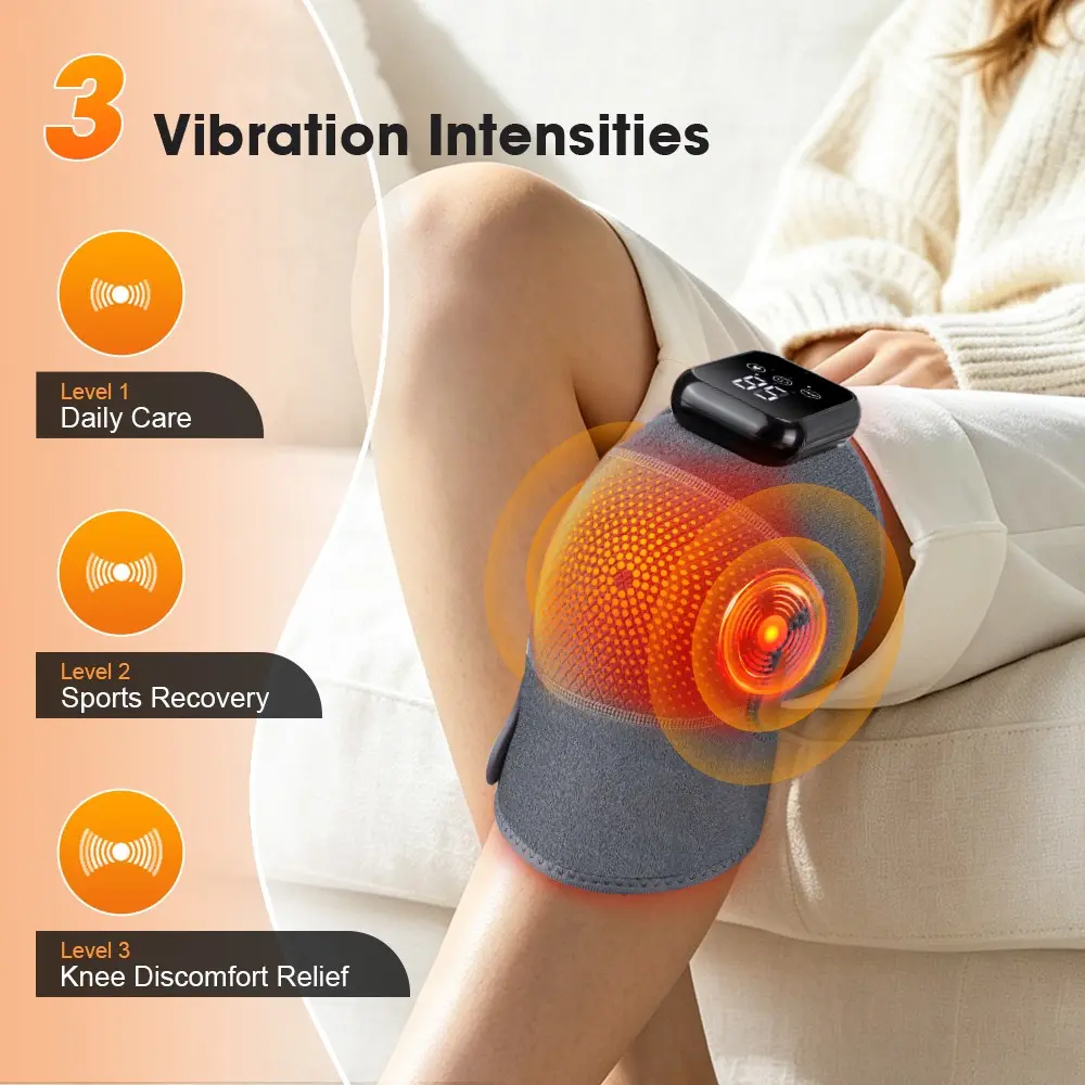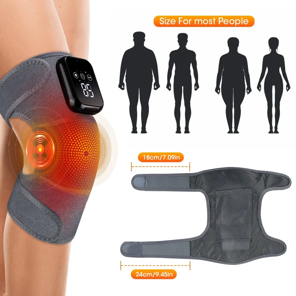 Hot compress vibrating knee joint massager, extended heating knee pad, 3 types of vibration and 3 levels of hot compress, massage knee pad, adjustable extension strap for joint discomfort, suitable for gifting to parents and friends