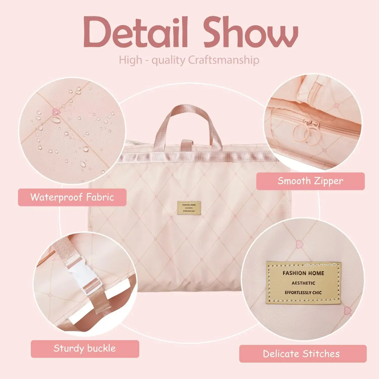 5 compartments + 2 mesh pockets Waterproof, wrinkle-resistant, washable Hang in closet / fold into luggage / attach to suitcase Fits 20 carry-on, saves space & avoids checked fees