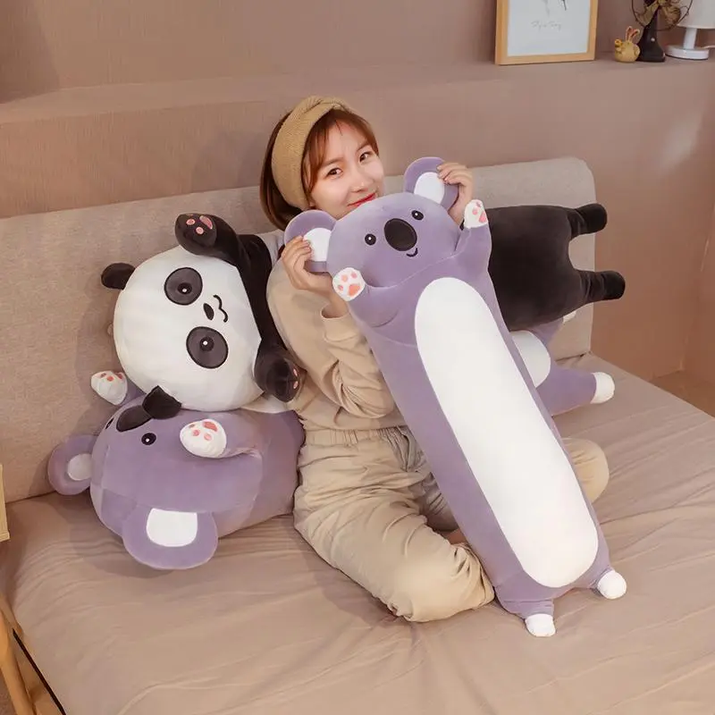 50-130cm Giant Panda Plush Toy Cylidrical Animal Bolster Pillow Koala Stuffed Plushie Sleeping Friend