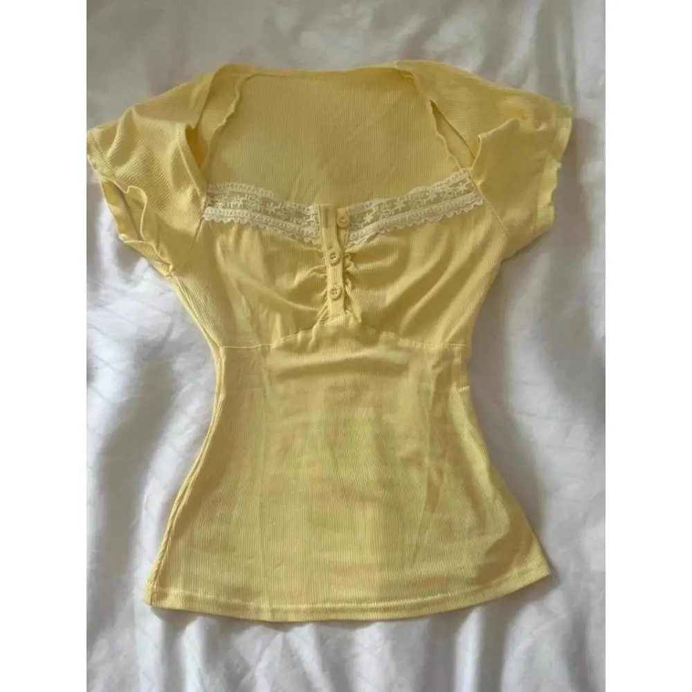 Whether you're heading to a casual brunch or a high street fashion event, this top is versatile enough to suit any occasion.Its slim fit design is perfect for those who prefer a more tailored look, while the cotton blend fabric offers a breathable and soft feel.The vibrant yellow color adds a pop of sunshine to your outfit, making it a standout piece in your summer collection.