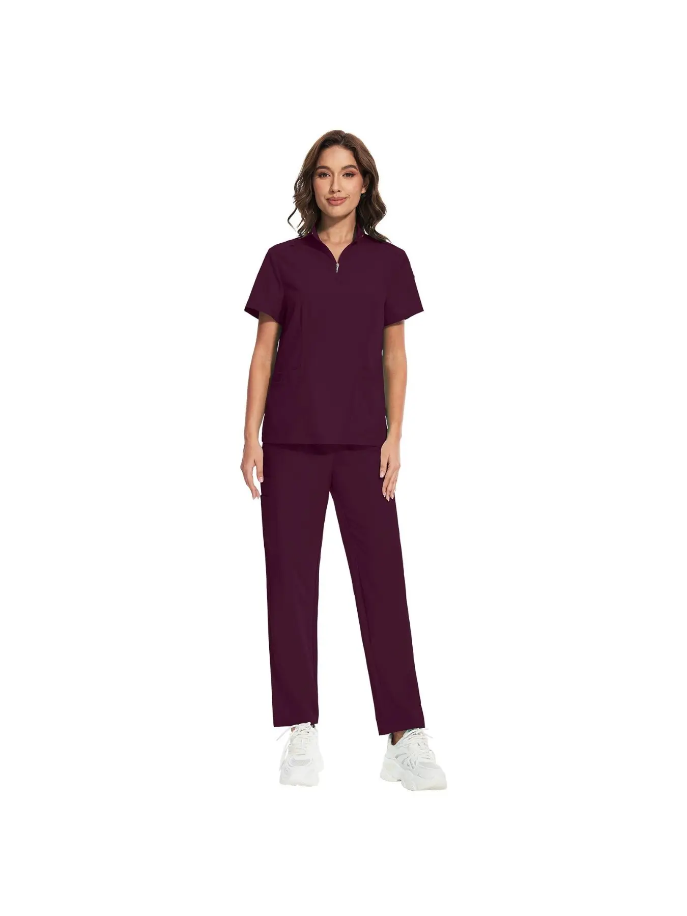 Solid Color Stand Collar Zipper Doctor and Nurse Uniform Operating Gown, Scrub Operating Room Straight Leg Pants Set, Non-Fading, Suitable for Multi-Scene Wear in Hospitals and Operating Rooms Easy to Put On and Take Off