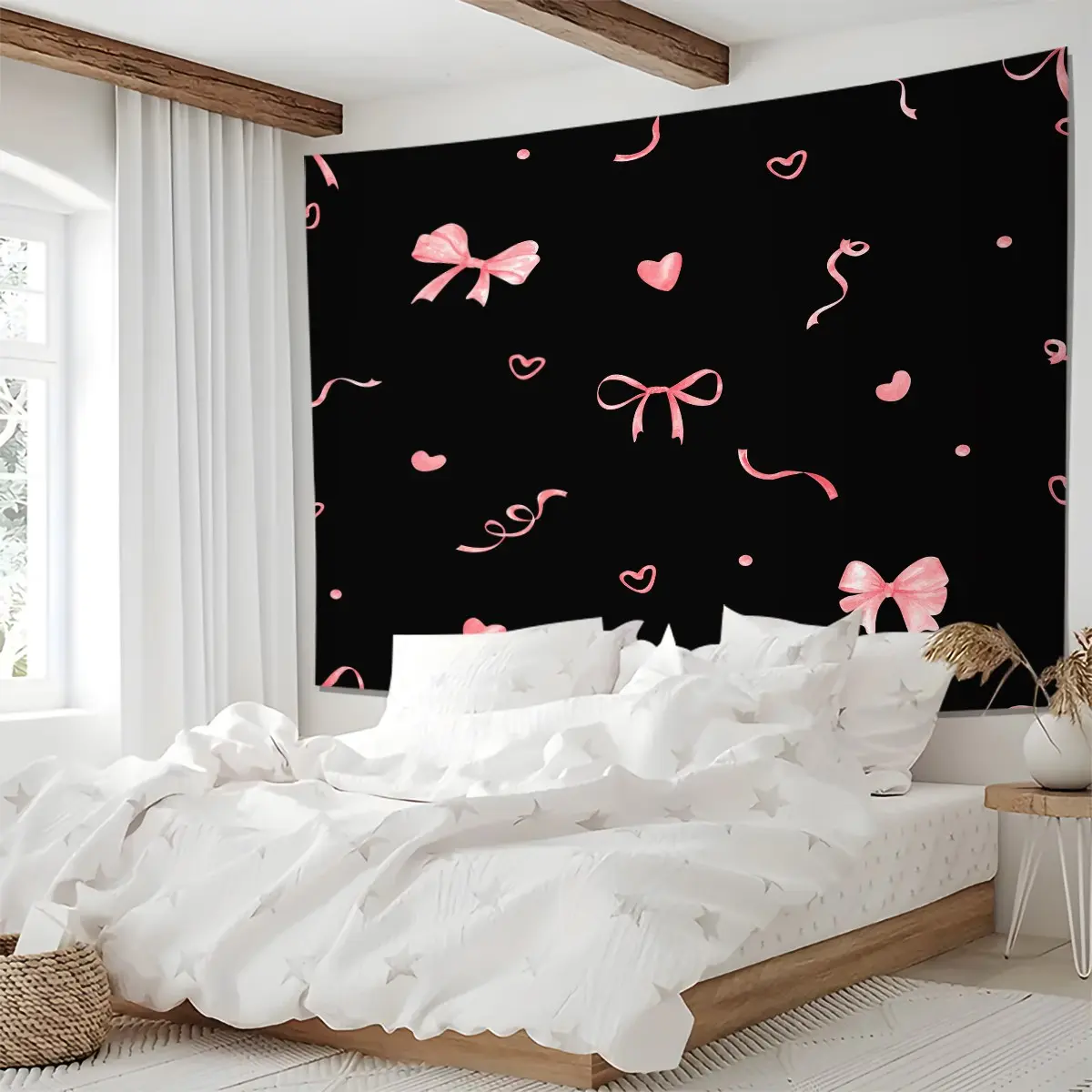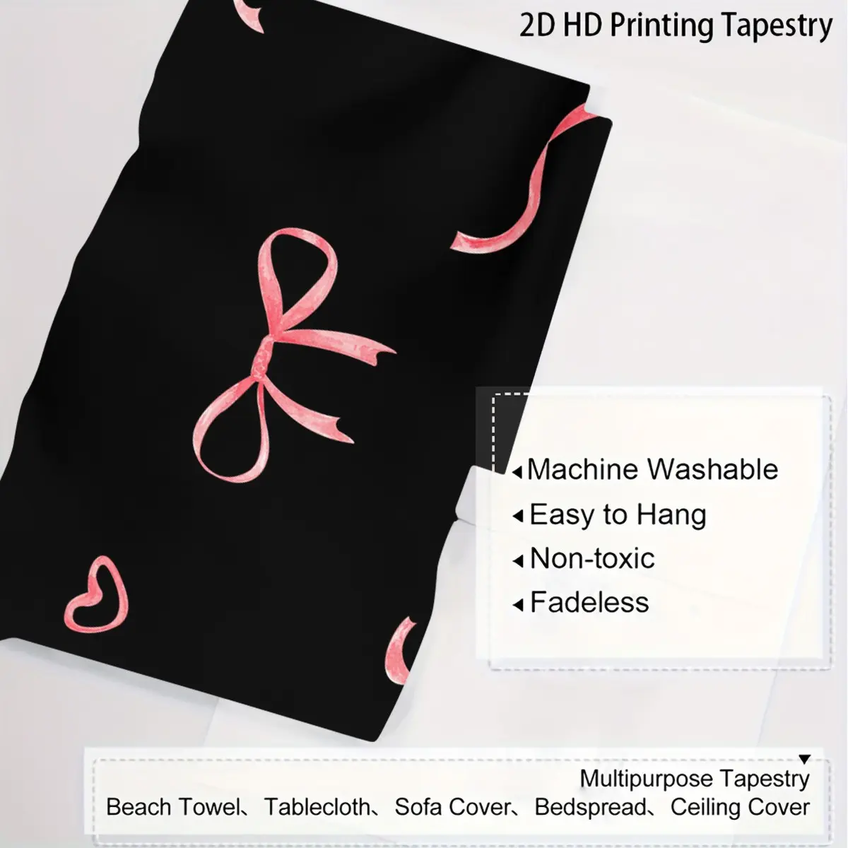 1Pcs Coquette Pink Bow Printed Tapestry, Sweet Y2K Aesthetic Wall Hanging, Soft Durable Fabric with Vivid Digital Print, Versatile Tapestries for Bedroom, Dorm, Living Room & Vanity Area, Ideal Cute Room Decor