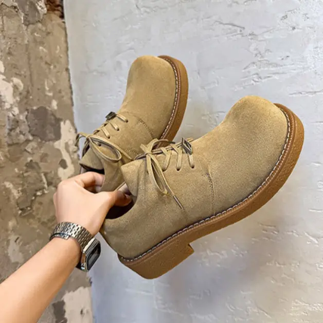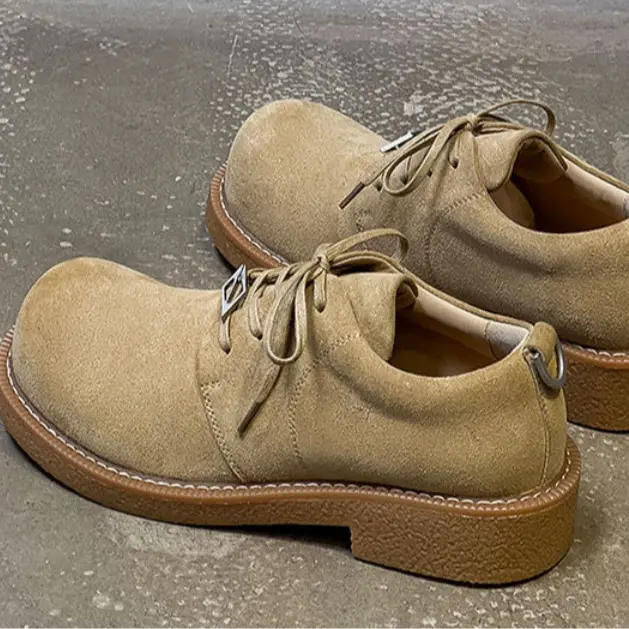 Men's Retro Platform Suede Shoes Big Toe Work Style Street Fashion Slim Leg