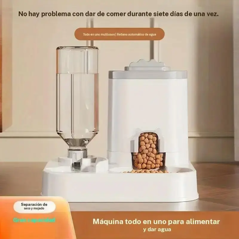 Cat Water Dispenser with Food Basin, Battery-Free, Modern, Easy Clean, Durable, Auto Pet Feeder, Small Dogs, Sturdy Construction