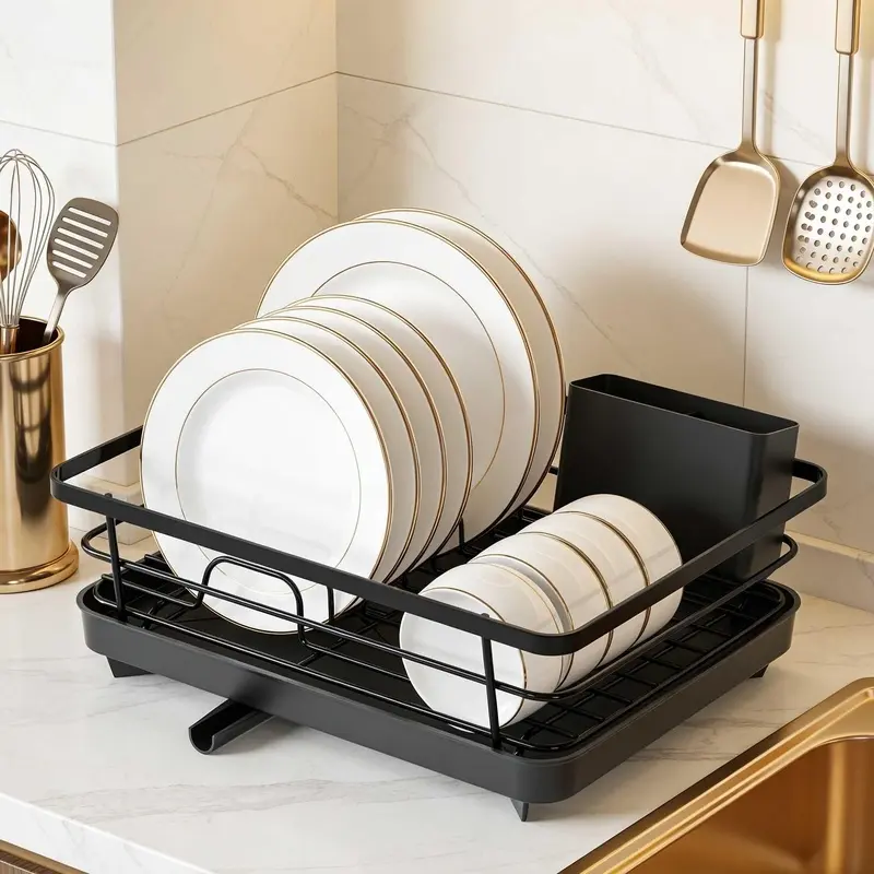 Household kitchen dish rack, quick drainage at the sink drip position, non-slip feet for enhanced stability, equipped with utensil holder and knife clip, classified storage for bowls and platesHousehold kitchen dish rack, quick drainage at the sink drip position, non-slip feet for enhanced stability, equipped with utensil holder and knife clip, classified storage for bowls and platesHousehold kitchen dish rack, quick drainage at the sink drip position, non-slip feet for enhanced stability, equipped with utensil holder and knife clip, classified storage for bowls and platesHousehold kitchen dish rack, quick drainage at the sink drip position, non-slip feet for enhanced stability, equipped with utensil holder and knife clip, classified storage for bowls and plates