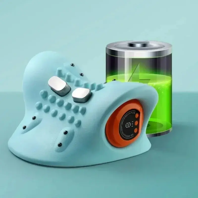 Electric cervical traction massager, neck massager, EMS relaxation and heating kneading massage pillow, ergonomic headrest, for adult neck repair traction, electric neck and head acupoint massage, home relaxation tools, USB charging