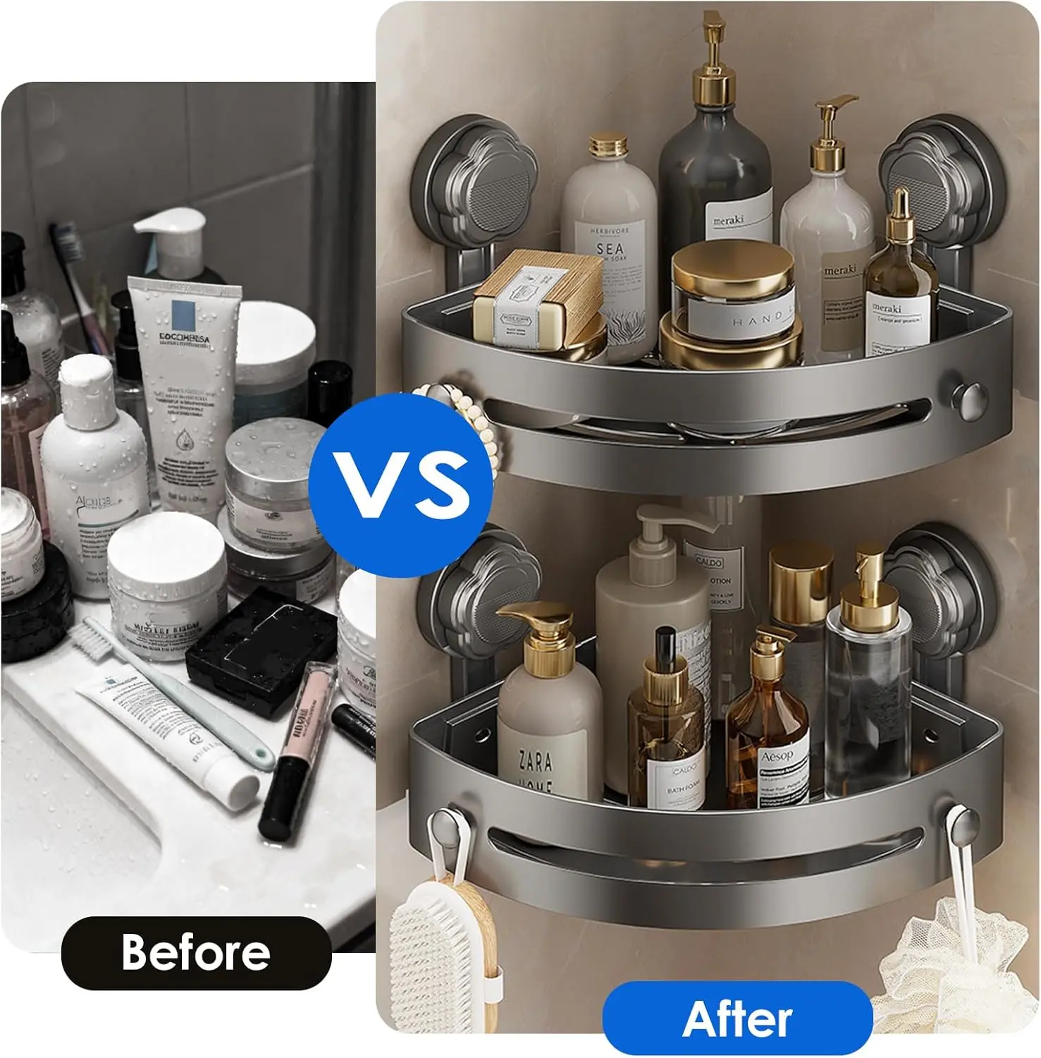 Equipped with 2 sturdy integrated hooks, this organizer provides extra space to hang loofahs, razors, bath brushes, or towels. Say goodbye to clutter and enjoy a tidier, more efficient shower experience.