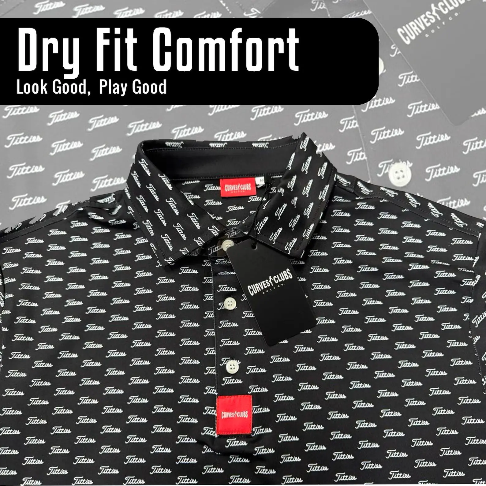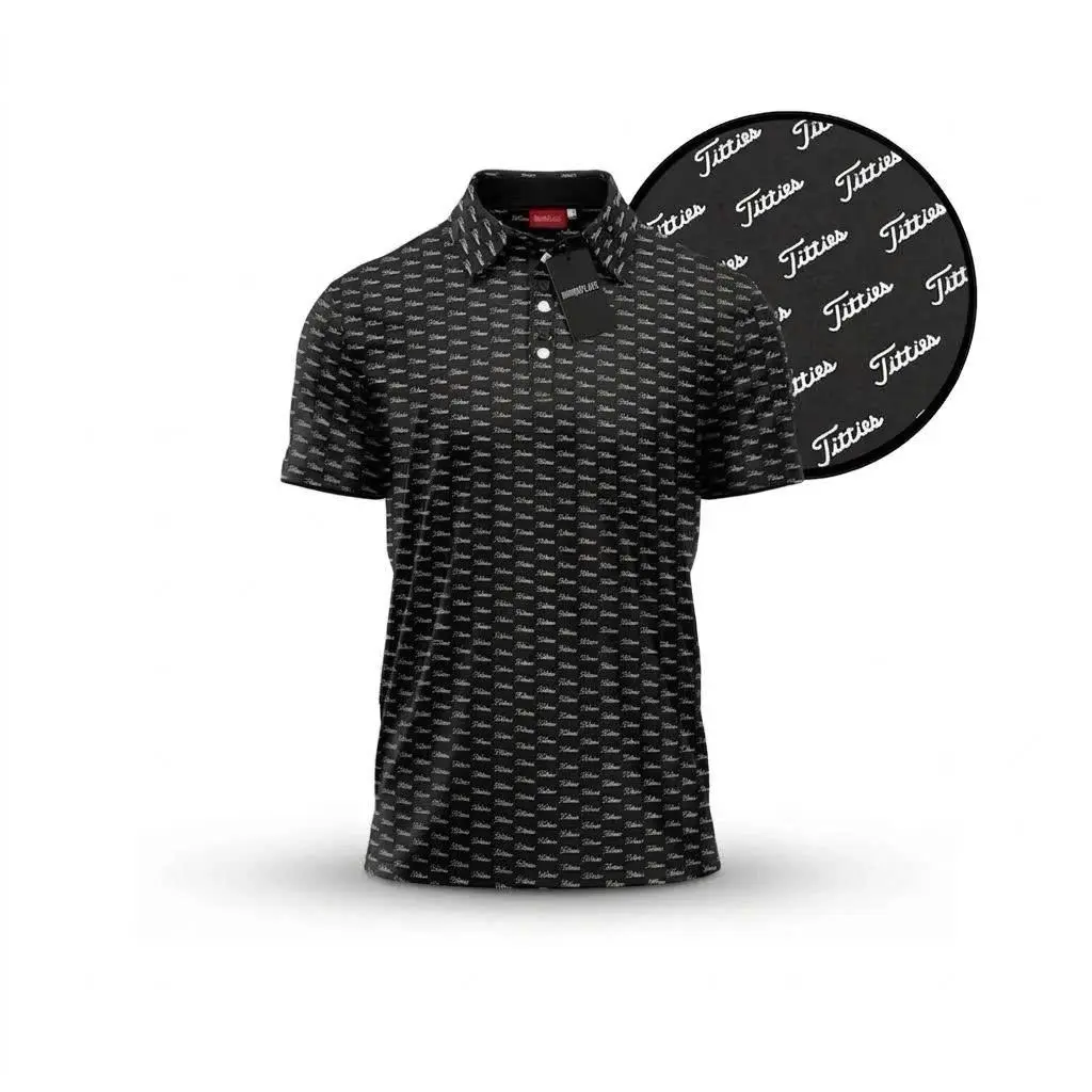 Black Titties Graphic Golf Polo Shirt for Men Casual Streetwear Statement Piece for Daily Fashion