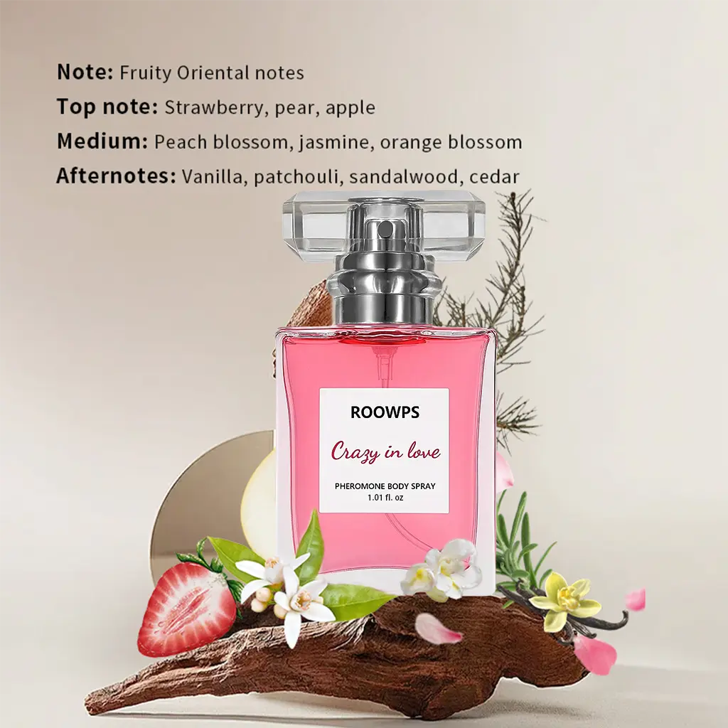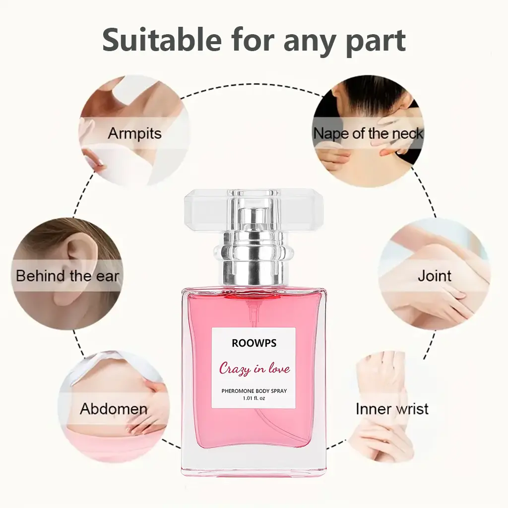 [ Fresh Floral Quality: This captivating scent balances fruity freshness and floral elegance, while musky undertones add depth and sensuality. The result is a fragrance that’s playful, sophisticated, and uniquely unforgettable., Size Available:·30mL: Compact and convenient, ideal for daily wear and travel. Overall Impression: Crazy in Love Pheromone Body Spray has become a viral favorite for its enchanting aroma that perfectly balances sweetness, sophistication, and sensuality. Perfect for everyday use or special occasions, this scent is your ultimate secret weapon for confidence and allure. Dare to captivate. Dare to be Crazy in Love.