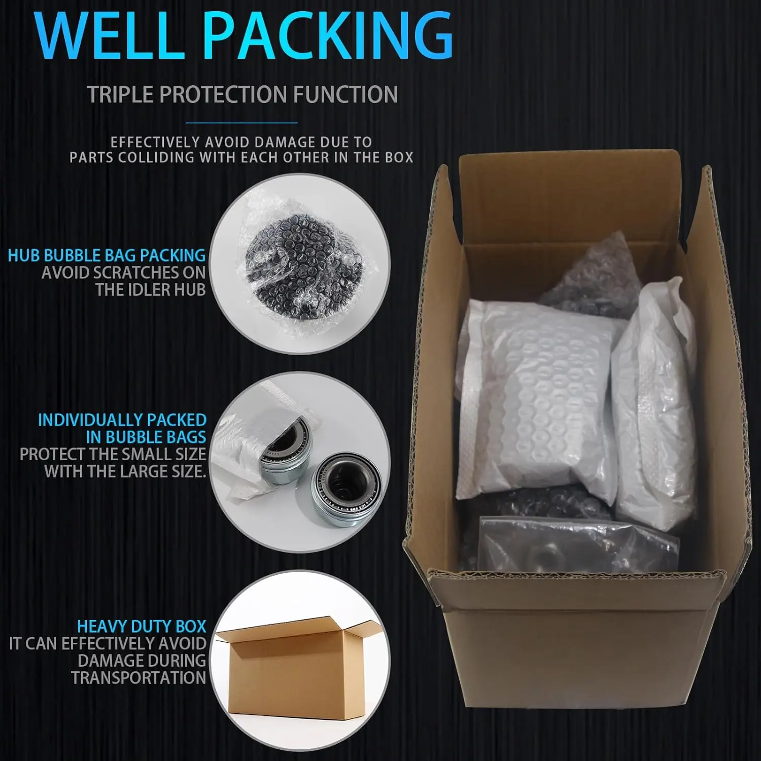 [WELL PACKING ]The parts are individually packed in bubble bags.Protect the small size with the large size.Packed in a heavy duty box.Effectively avoid damage due to parts colliding with each other in the box.