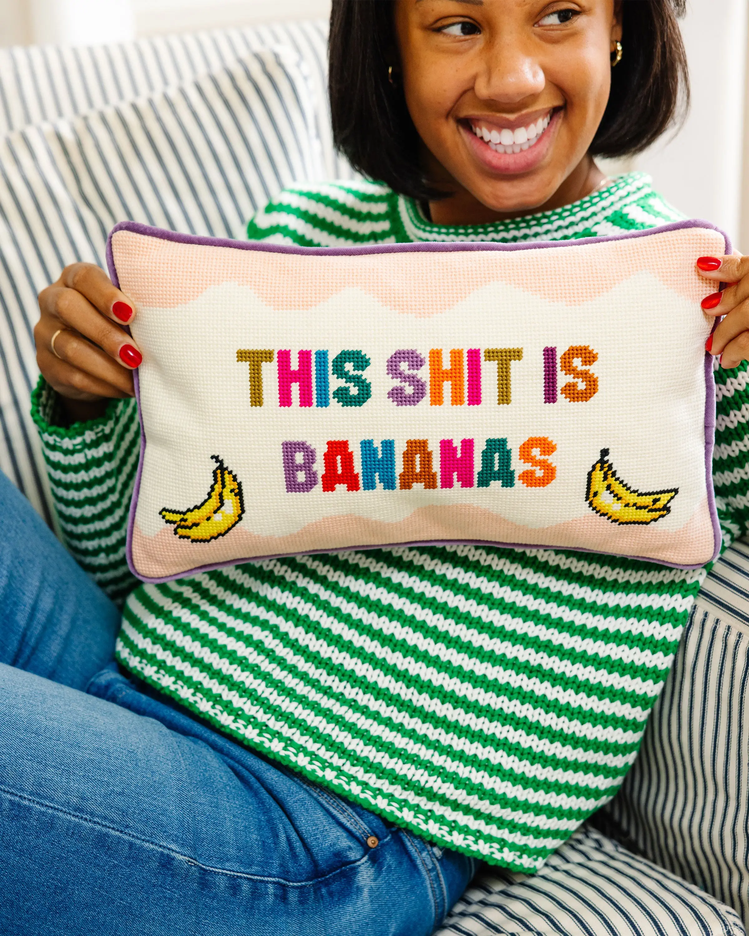 Embrace the latest joy-inspired decor movement, and transform your home with Furbish Studio’s Needlepoint and Statement Pillows. Our pillows feature vibrant patterns, playful prints and uniquely-you sayings that spark happiness and guarantee LOLs – because your home should make you smile every day.