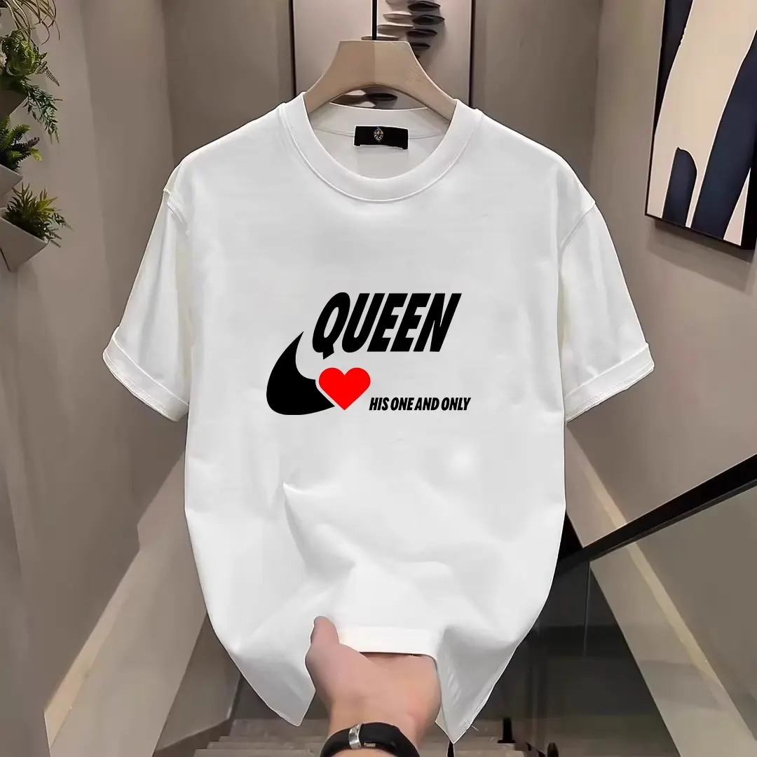 King & Queen Couple Matching Graphic Tees His & Hers Cotton T-Shirts Love Heart Print Couple Tops