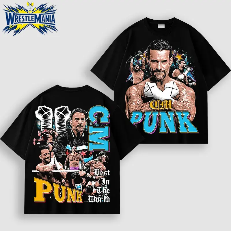 [WWE] CM Punk V3 Best In The World Cotton Graphic T Shirt, Vintage WWE Wrestling Fan Tee, Chicago Stars CM Punk Wrestling Shirt, Retro Pro Wrestling Streetwear Graphic T-Shirt for Men Women WWE AEW Wrestling Fans
