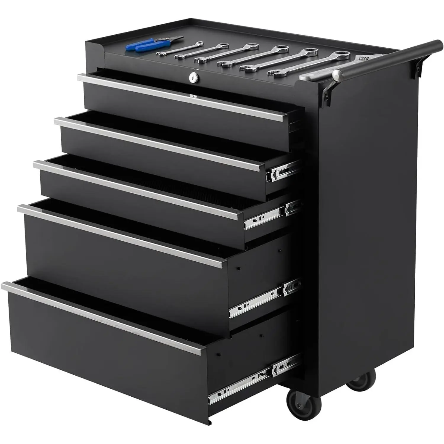 Large Storage Space: Equipped with 5 spacious drawers, it can store tools, hardware, etc. in layers and categories, making the garage/workshop bid farewell to clutter. Each drawer has a strong load-bearing capacity and can easily store heavy tools, keeping the work area clean and efficient.