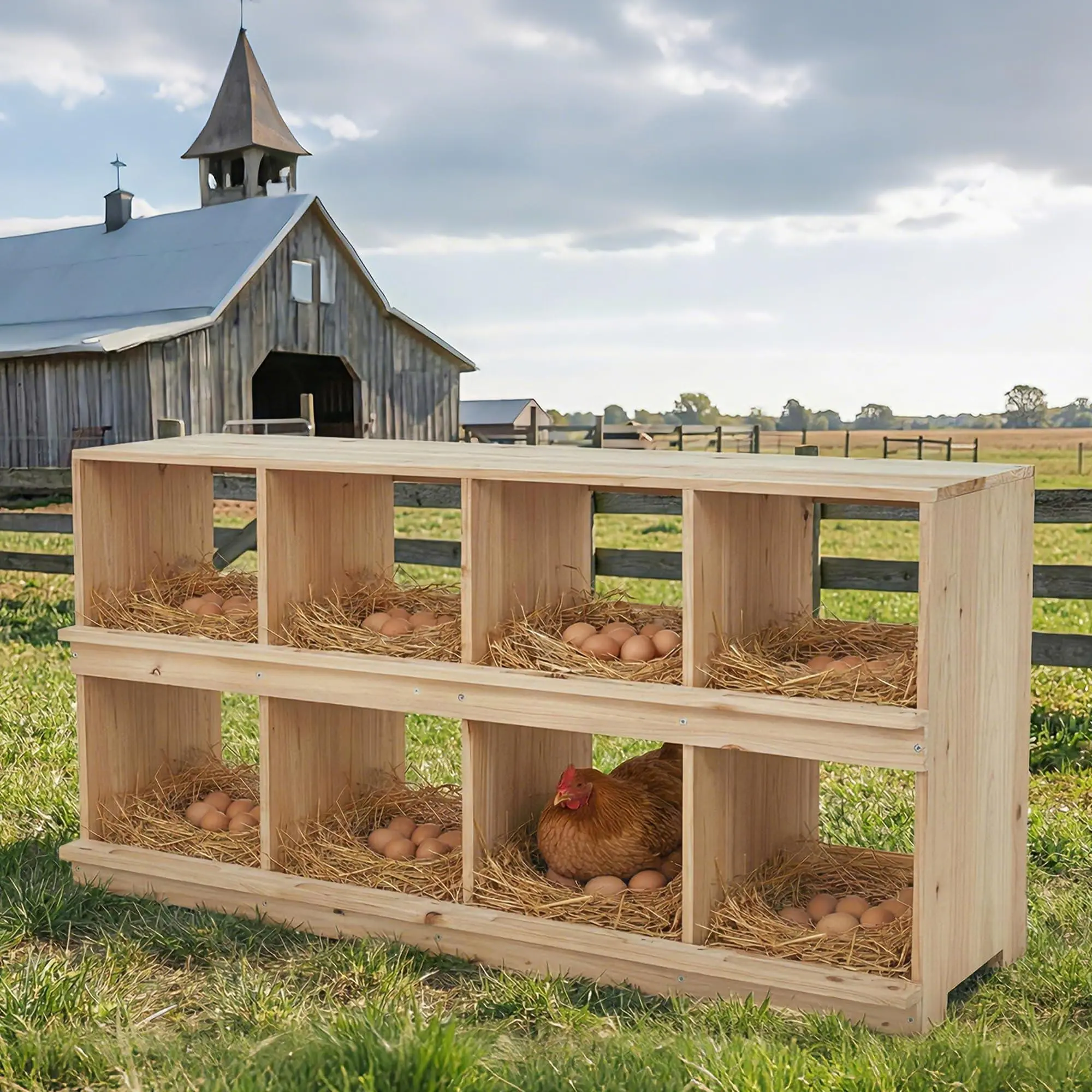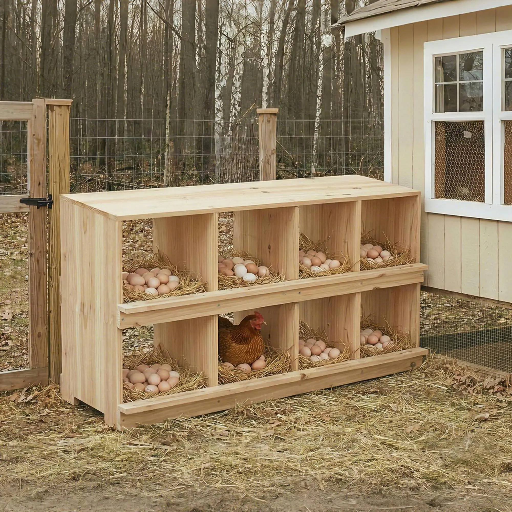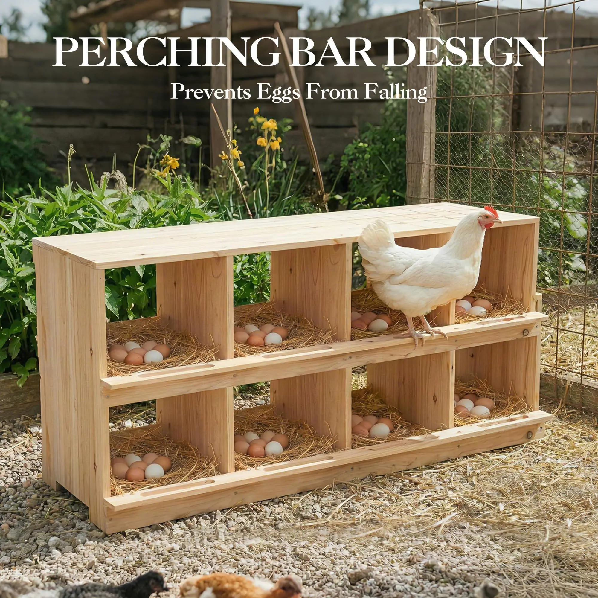 Egg Protection Design: Perches and baffles prevent eggs from rolling away (like roll away nesting boxes). Layer with straw or chicken nesting herbs for chicken coop to ensure clean, secure laying environment against breakage.