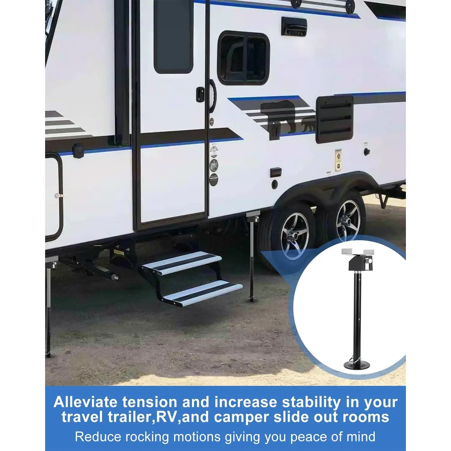 【High Weight Capacity】Each jack supports up to 5000 LBS, making them suitable for even the largest RVs and ensuring your vehicle stays secure and stable during use.