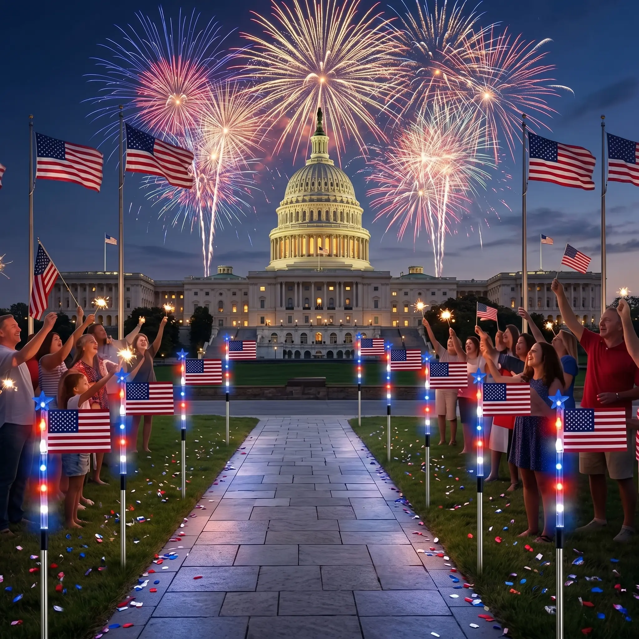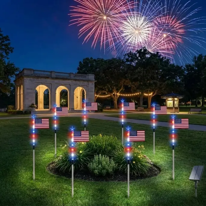Complete 8-Piece Patriotic Set: Why settle for one when you can line your entire driveway? This 8-in-1 set provides a cohesive, high-impact display that transforms any outdoor space into a patriotic landmark.