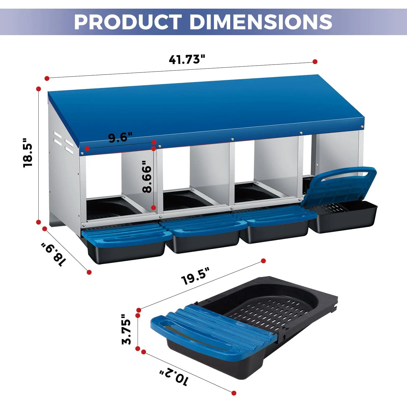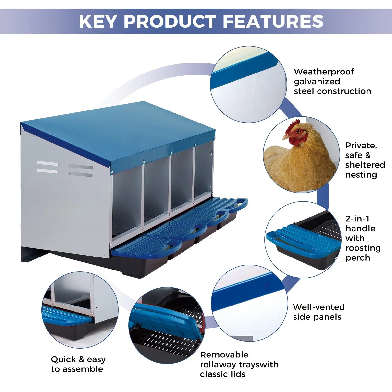Spacious & Private Compartments: 4 large sections give hens comfort and privacy, reducing stress and competition for healthier laying.
