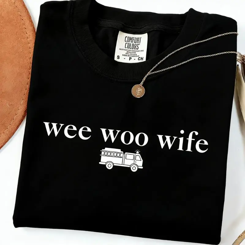Comfort Colors Firefighter Wife Shirt, Funny Wife T-Shirts, Fire Fighter Gift, Firefighter Gifts, Wee Woo Wife Shirt, Sarcastic Shirt For Women, Unisex Casual Graphic T-Shirts