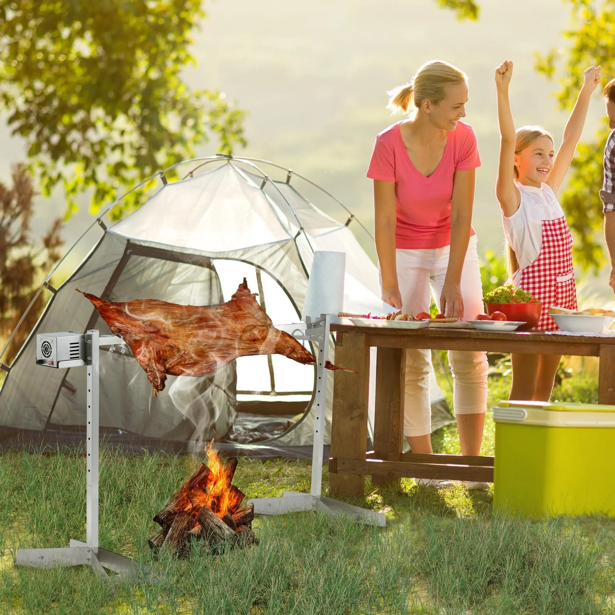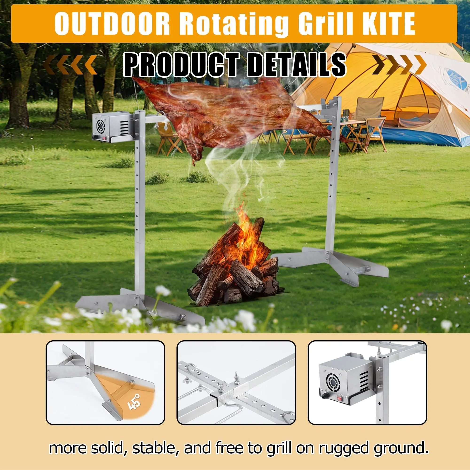Wide Application - Our stainless steel rotisserie roaster is suitable for large family gatherings, outdoor picnics, barbecue bars, and camping sites. It can be installed with simple steps and immediately used to make delicious dishes. We also provide    tools for your installation.