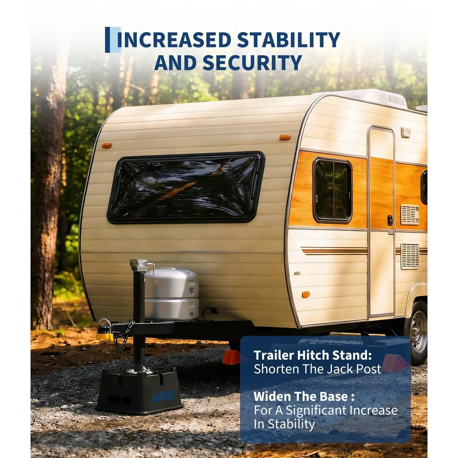 STABLE&ANTI-SINK SUPPORT: The trailer hitch stand supports your RV’s front weight after unhooking, preventing front sag and keeping the RV balanced. The 4 stabilizer pads go under your RV’s stabilizer legs to increase ground contact, preventing sinking into soft ground and reducing shaking in windy conditions.