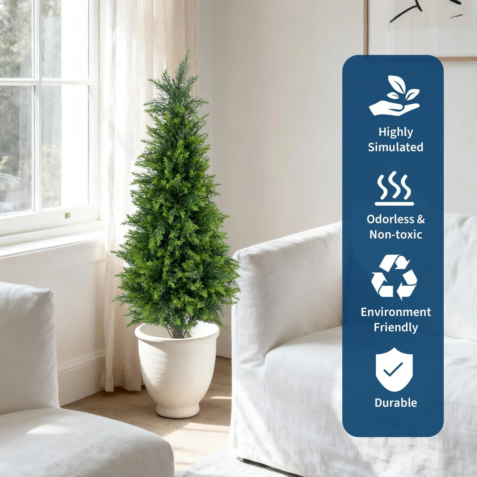 Always Fresh, No Maintenance: Say goodbye to watering and trimming. This low-maintenance fake cedar tree retains its beauty with just an occasional wipe.