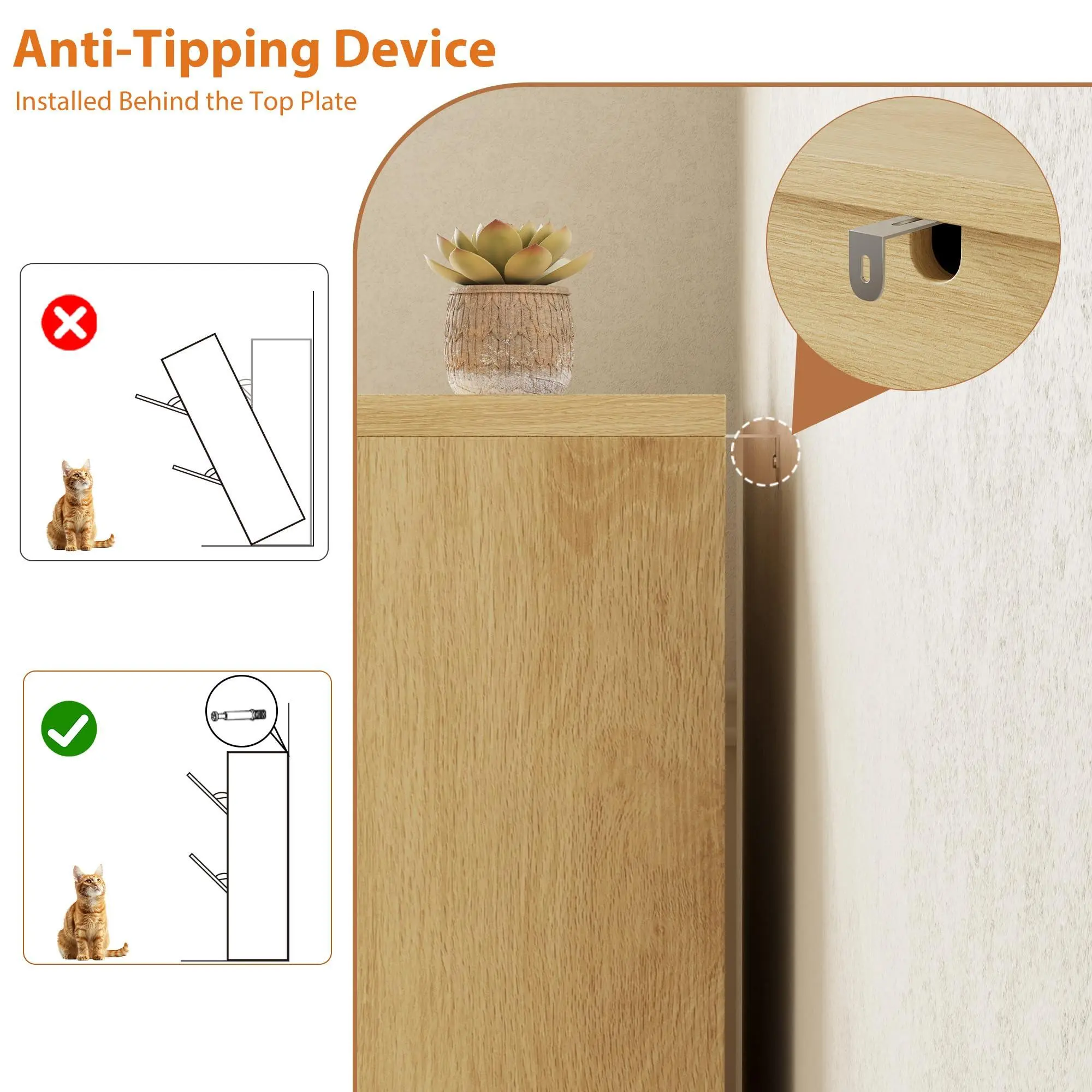 【Safe & Stable Construction】 This Shoe Organizer Cabinet is made of high-quality medium-density fiberboard (MDF), offering excellent stability and strong load-bearing capacity. It remains secure even when fully loaded. Furthermore, it is equipped with an anti-tipping device to prevent accidental tipping and protect your children or pets.