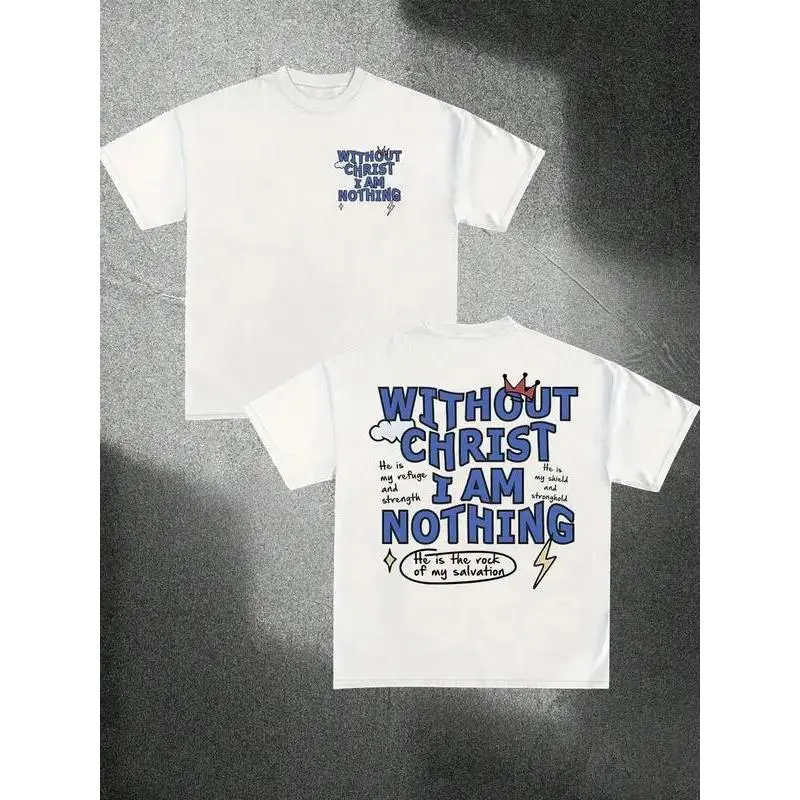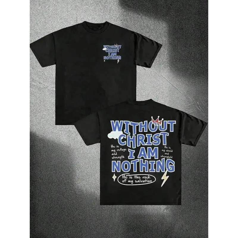 5. Men's Regular Fit without Christ I Am Nothing Letter Print Round Neck Tee, Street Fashion Casual Short Sleeve T-shirt for Daily Wear, Menswear for All Seasons, Top Classic Embroidered Love Sweatshirt