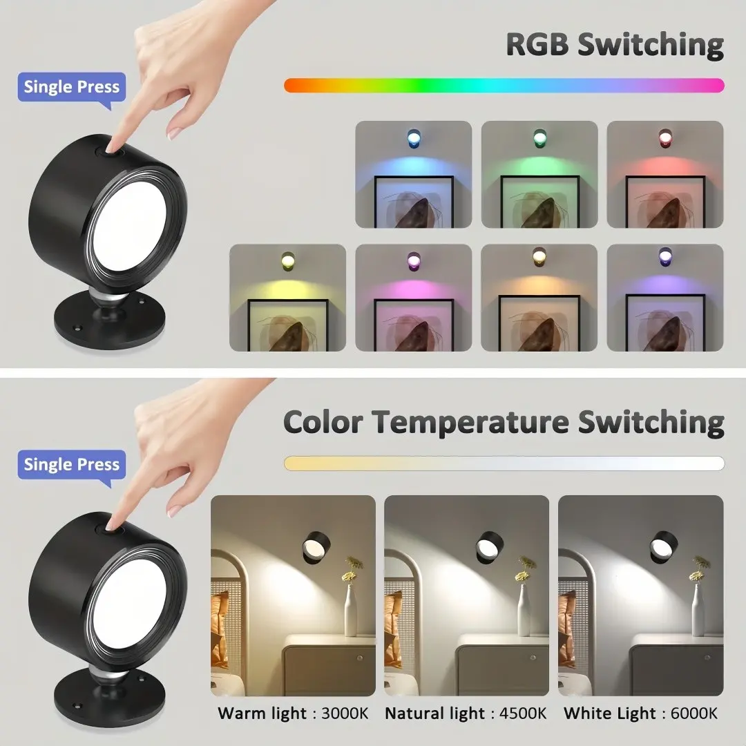 LED Wall Lamp USB Rechargeable Magnetic Ball Reading Light, RGB Color, Touch Remote Control, Perfect for Bedroom, Hallway, Cabinet, Living Room