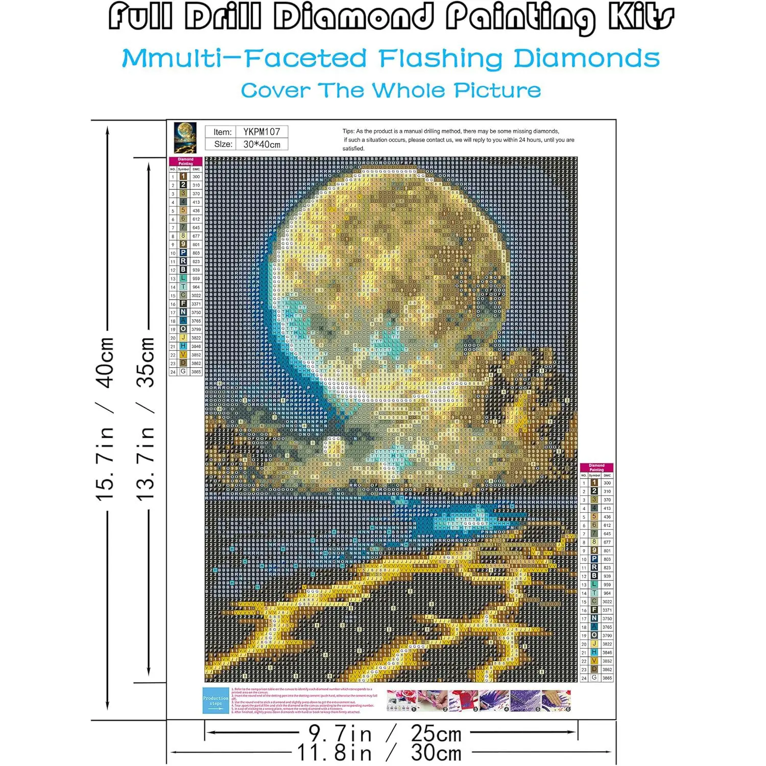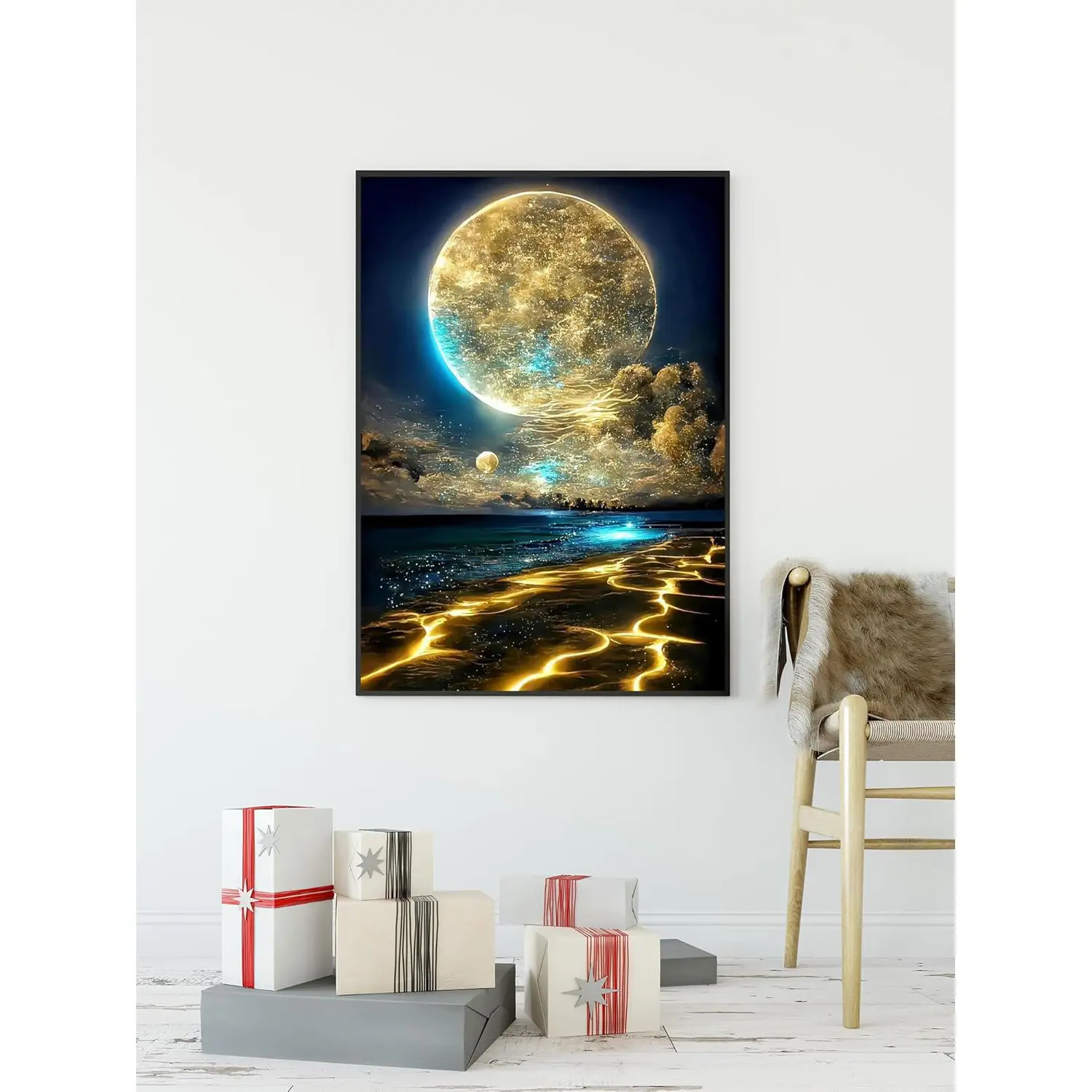 Adult 5D Diamond Painting Kit, Beginner-Friendly Moon Beach DIY Full Round Drill Moonlight Landscape, Home Wall Decor, 12x16 Inches, No Frame Included