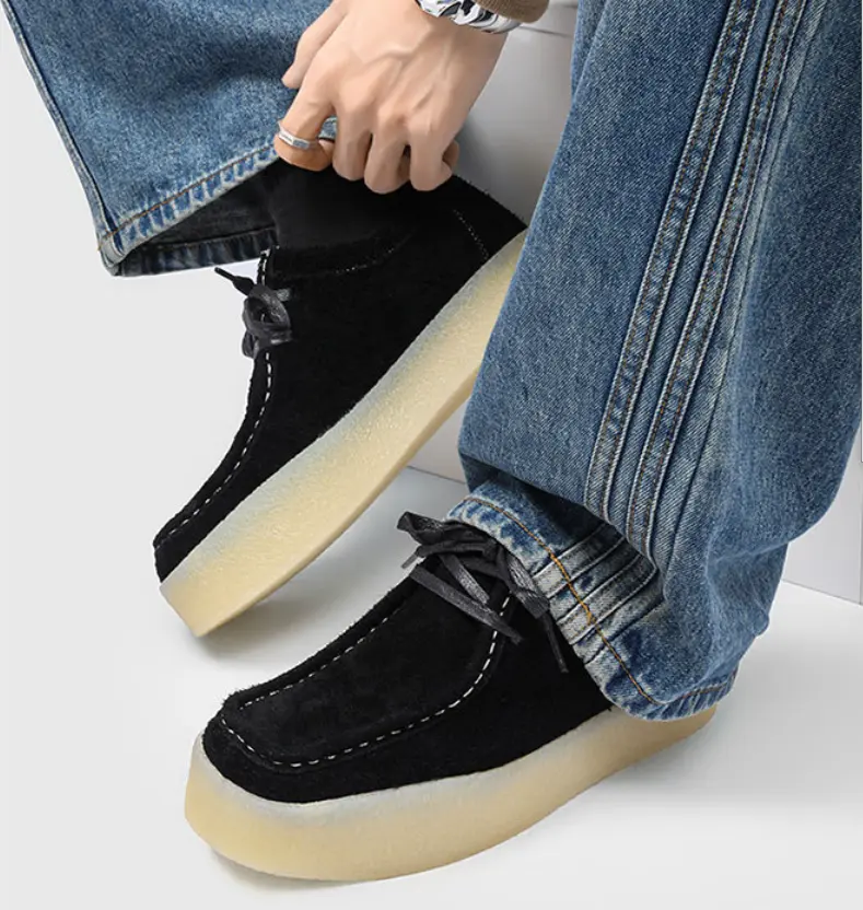 Men's Retro Platform Suede Shoes Big Toe Work Style Street Fashion Slim Leg