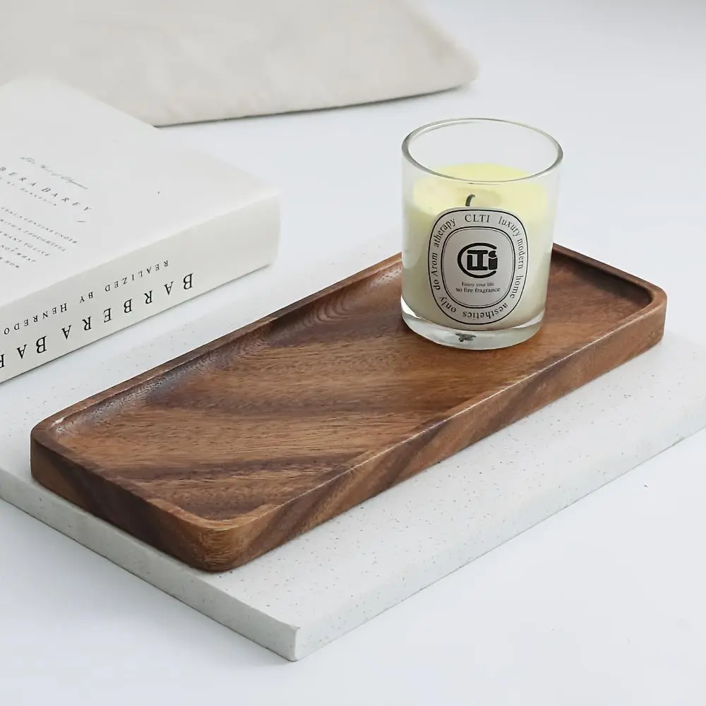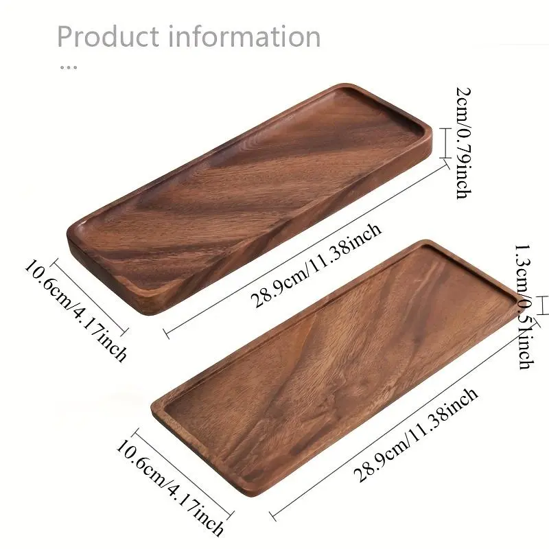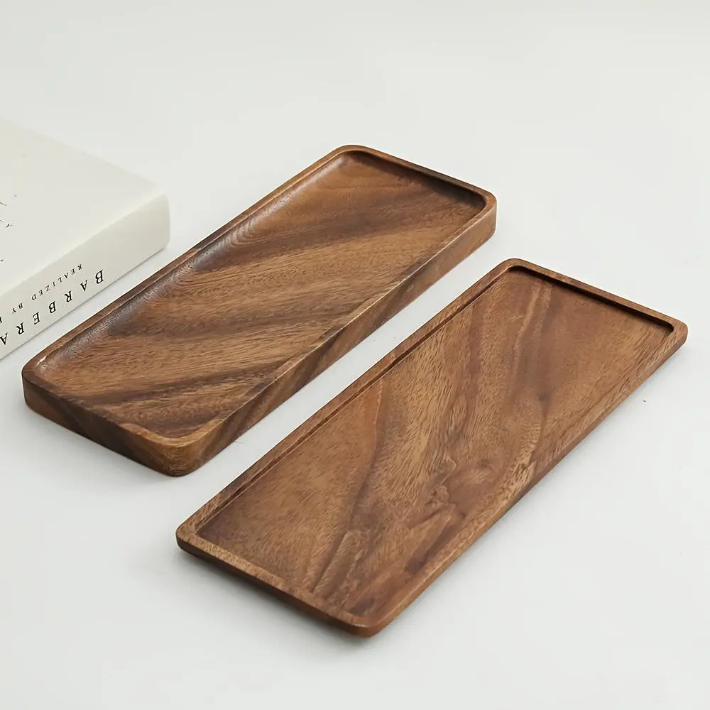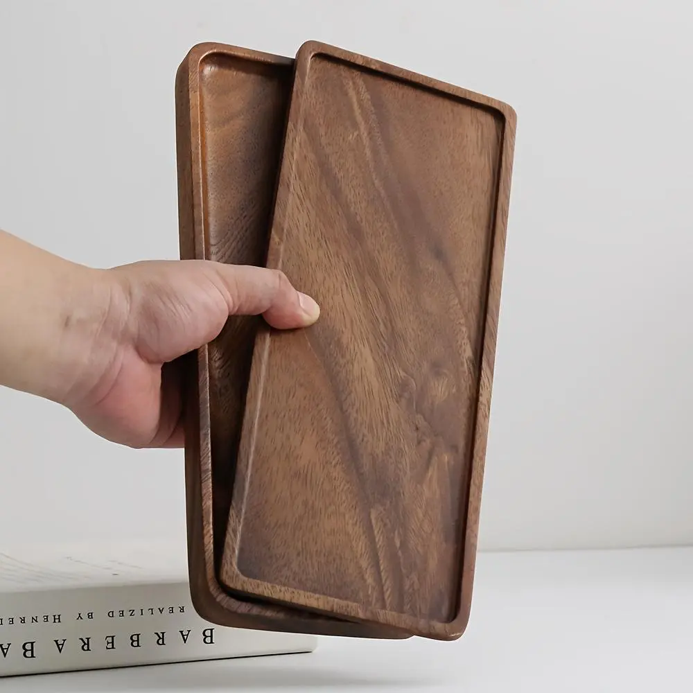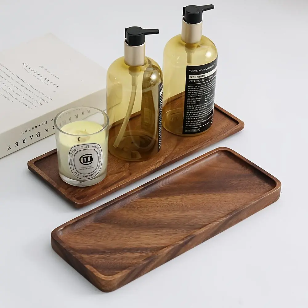 1pc Natural Walnut Wood Rectangular Tray - 11.8-Inch Large Bathroom Countertop Organizer, Oval Rectangular Bath Sink Storage Rack with Polished Natural Grain
