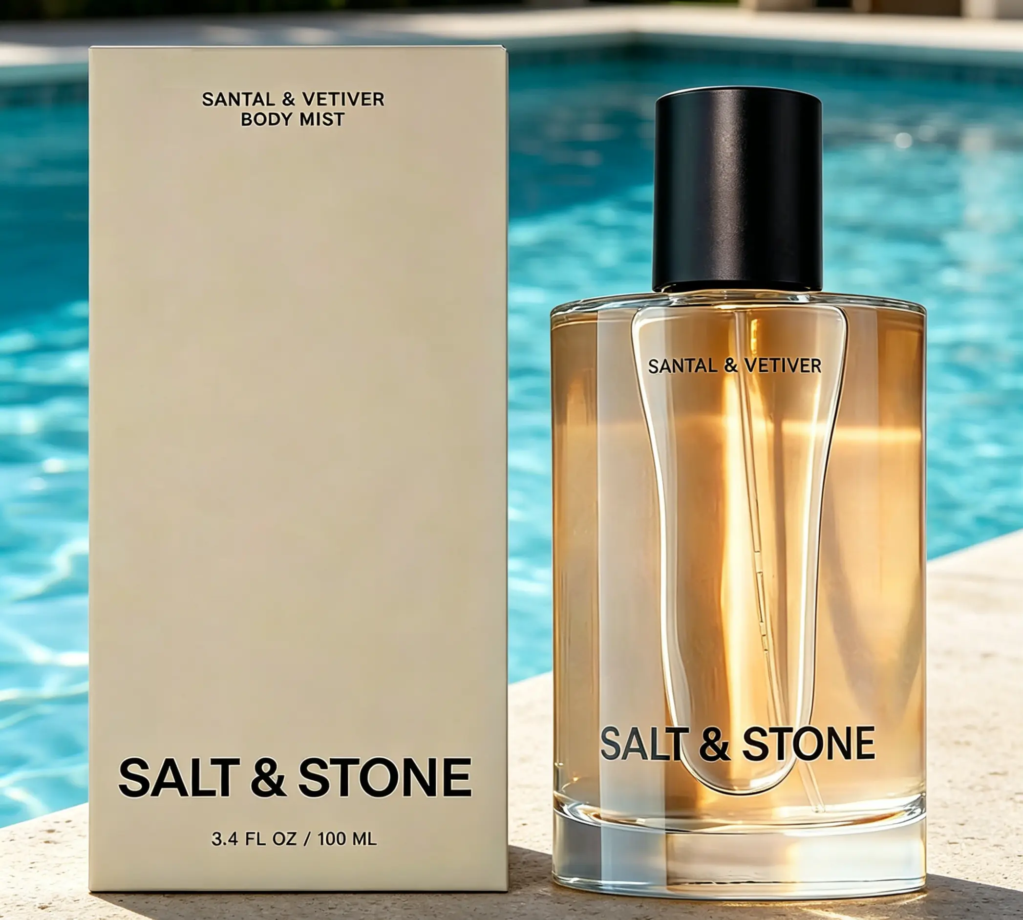 Salt & Stone Santal & Vetiver Body Mist | 3.4 oz 100ml | Unisex Hydrating Hair & Body Spray | Vegan Skincare Infused Fragrance