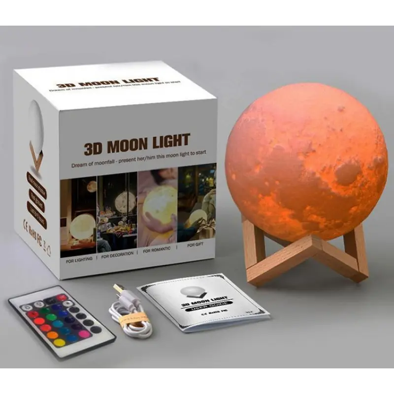 Realistic Moon Lamp with Aesthetic AmbienceDesigned with 3D stereoscopic carving technology, this moon lamp accurately reproduces the craters and textures on the lunar surface. Its realistic bumps and undulations create an authentic lunar landscape. When illuminated, it brings the vast starry sky right into your room.