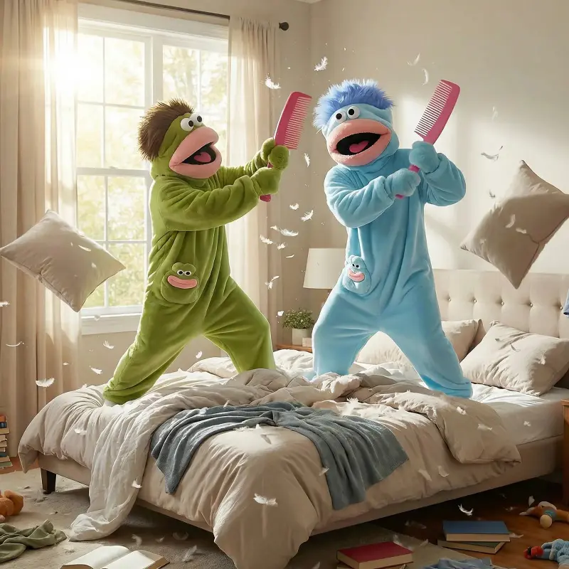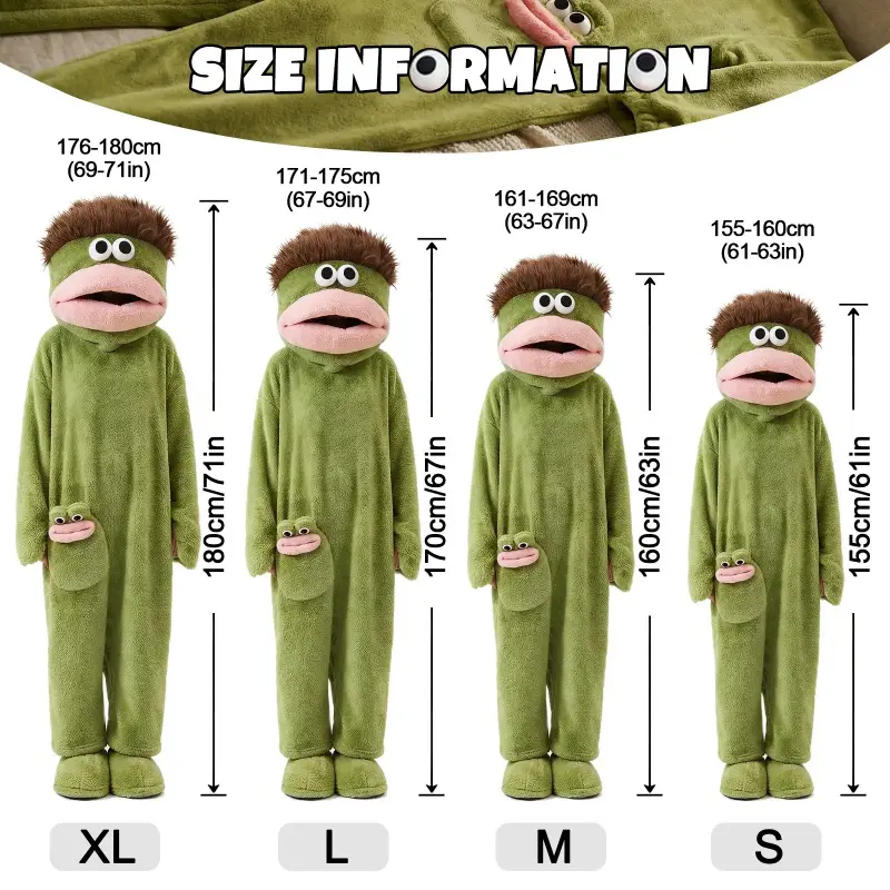 Funny Onesie Party, Comfortable Hooded Flannel Pajama Set, 3-Piece Includes Pajamas Comb Shoe Covers, Cute Monster Design