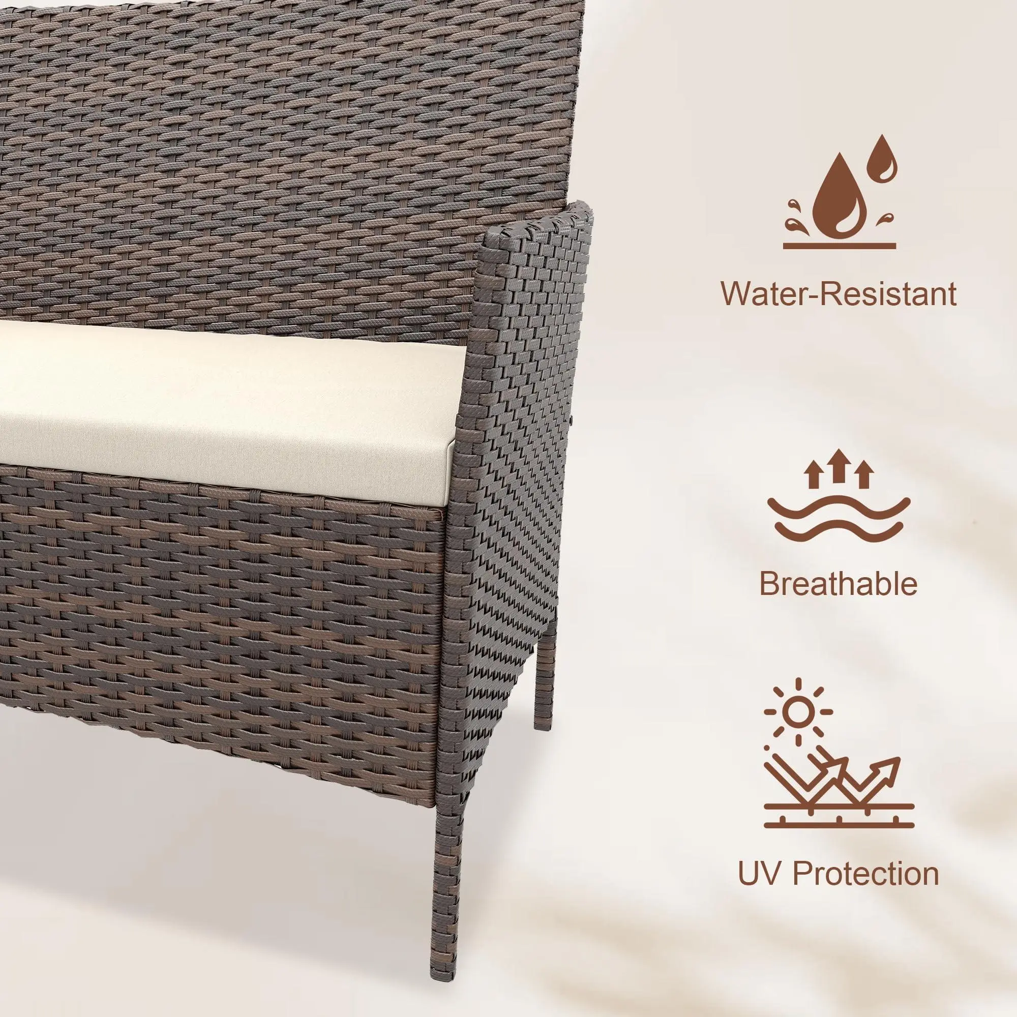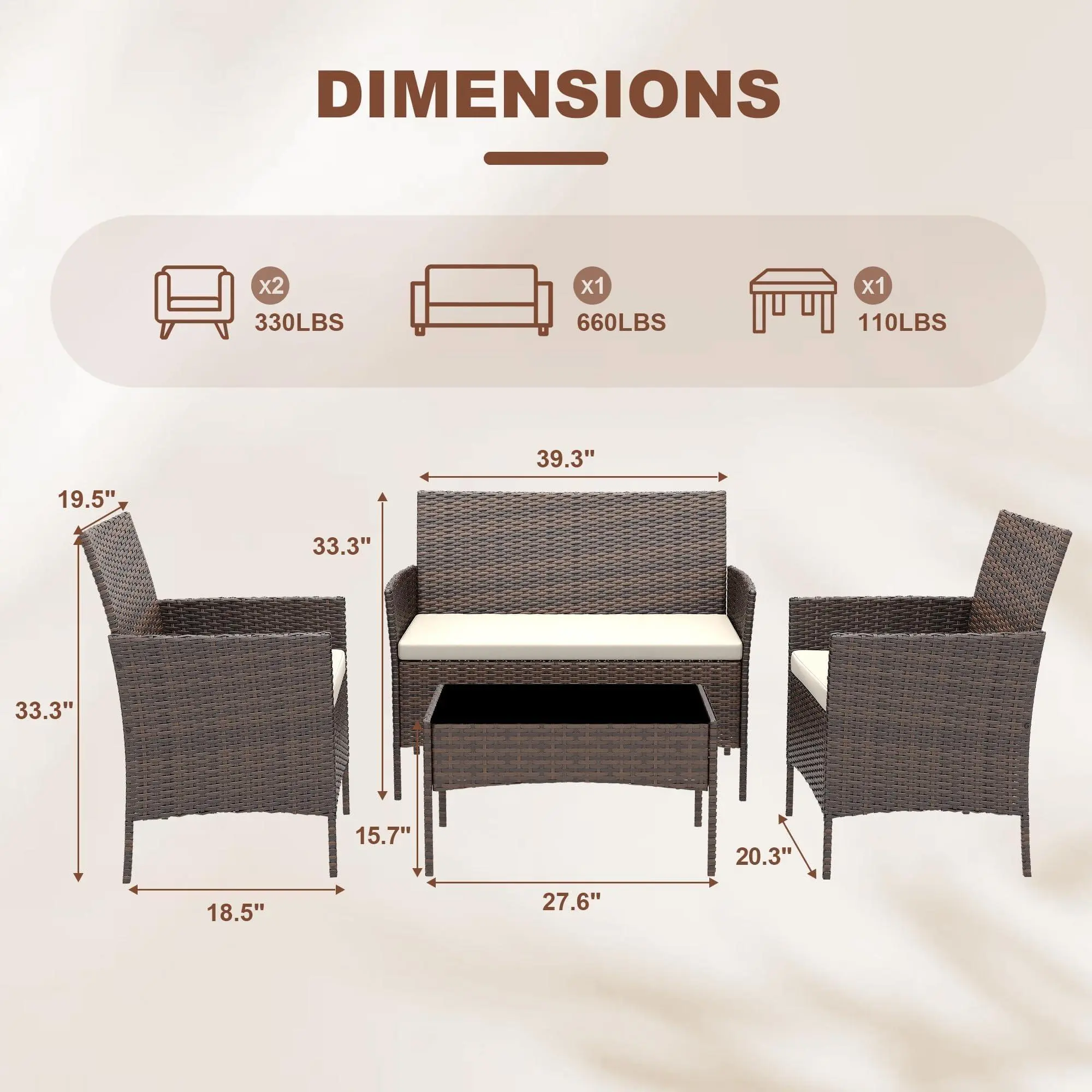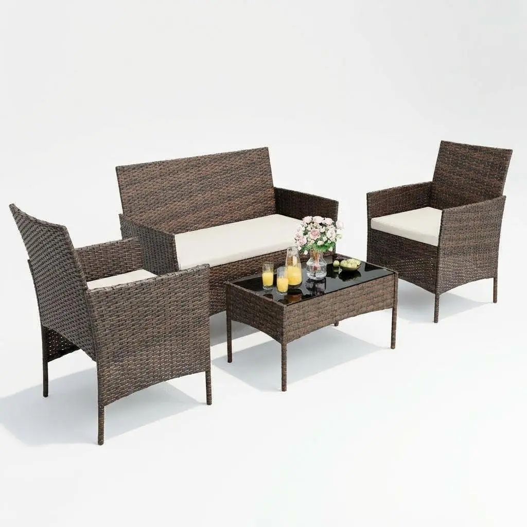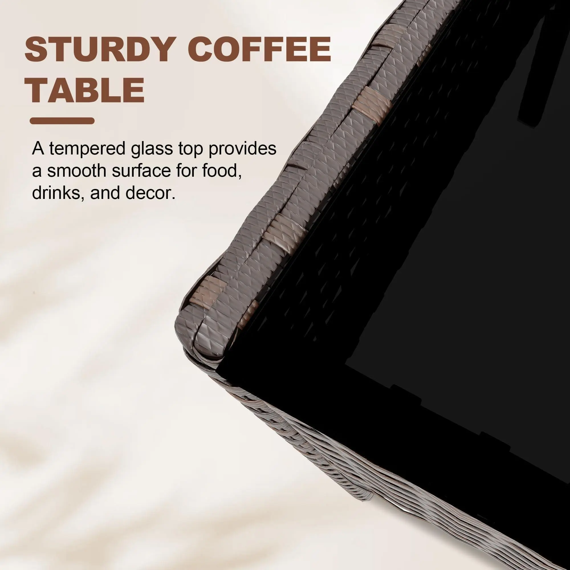 5. 4-Piece Outdoor Furniture Set, PE Rattan Wicker Chairs with Soft Cushions & Tempered Glass Coffee Table - All-Weather Patio Set for Garden, Backyard, Porch, Poolside (Grey/Beige)