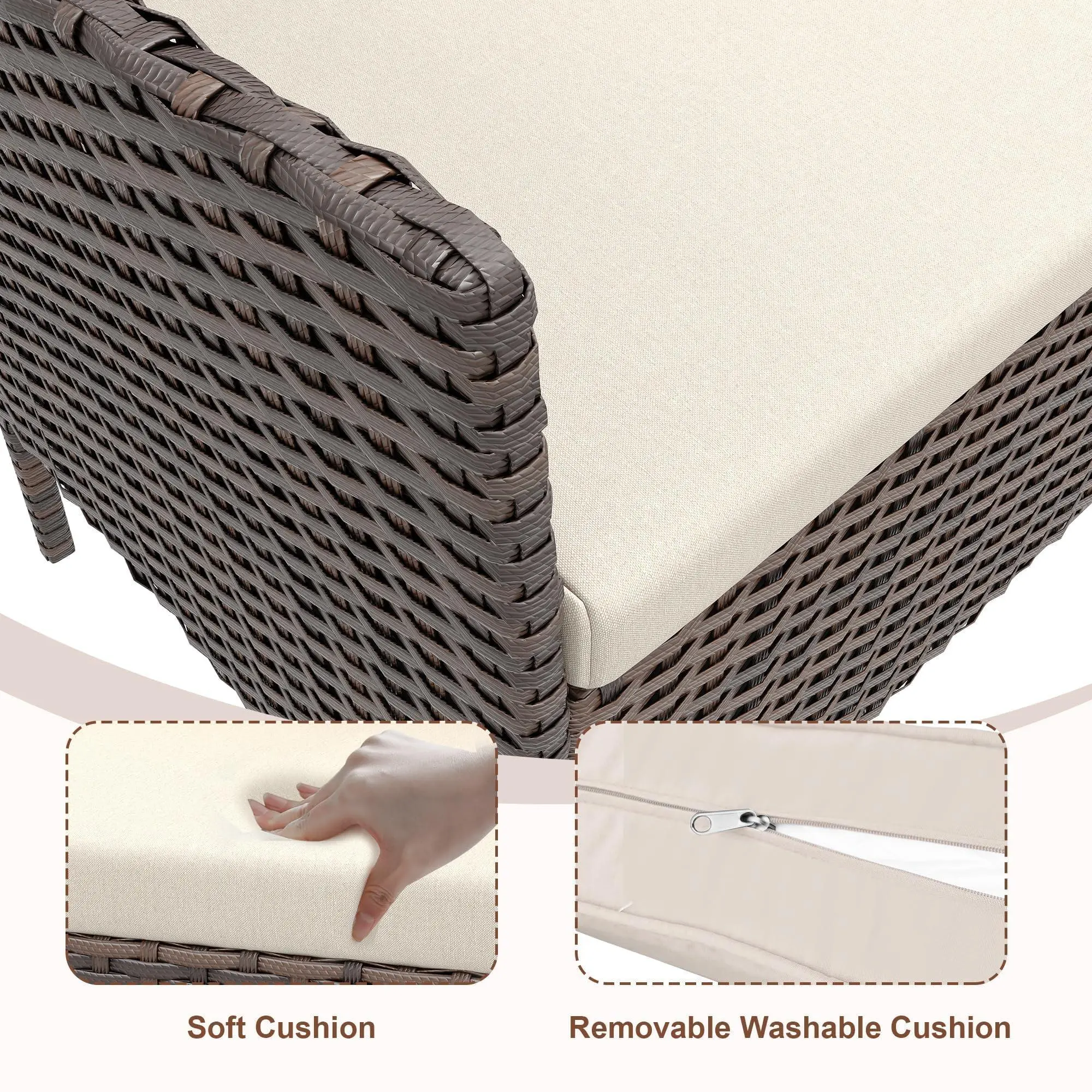 ✅【All-Weather Durability & High-End Materials】Made with premium PE rattan wicker, UV-resistant, waterproof, and anti-rust treated to withstand sun, rain, and temperature changes. The sturdy powder-coated steel frame ensures long-lasting use in all    seasons