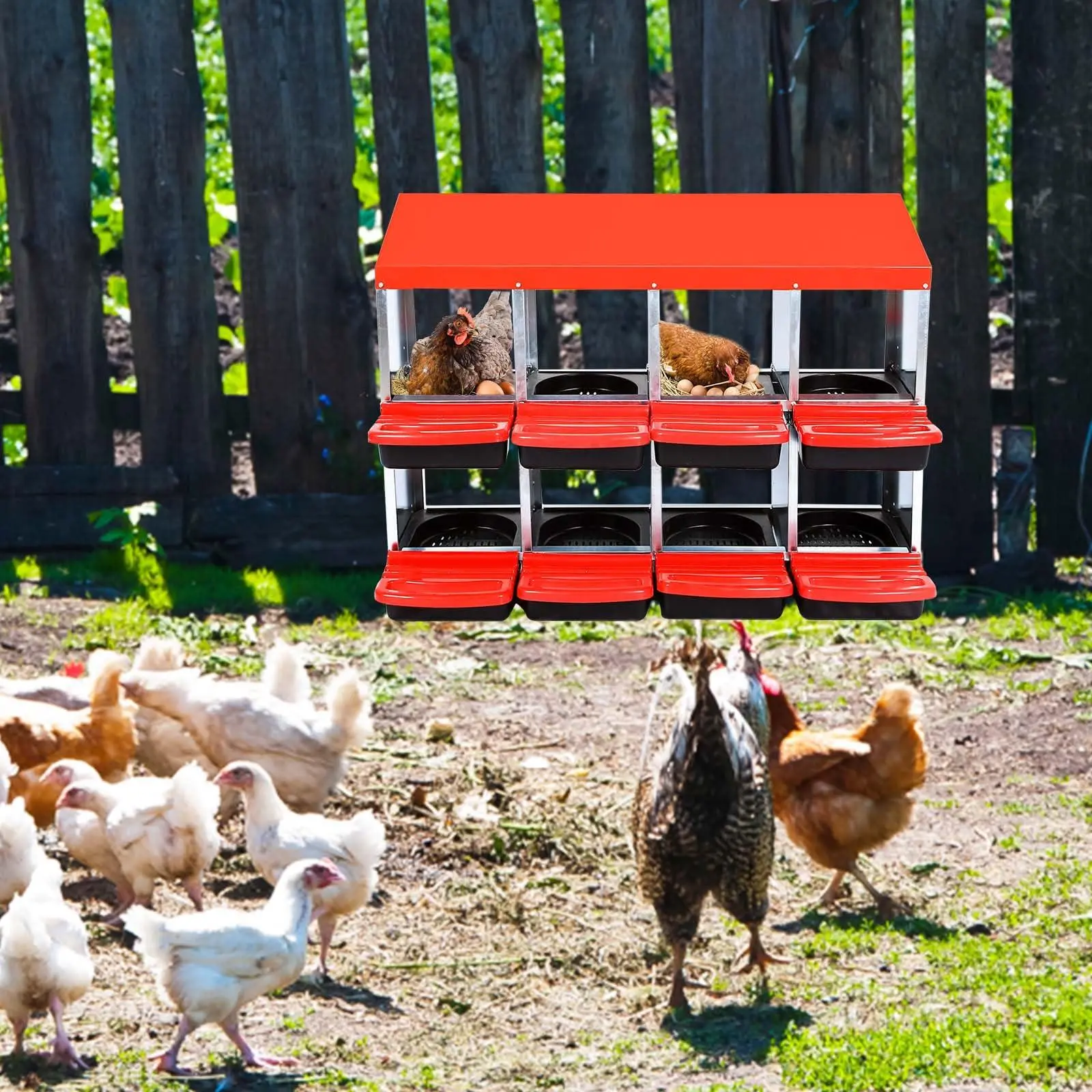 【Sturdy and Durable Construction】Our chicken nesting boxes are expertly crafted from high-quality galvanized steelt, easy-to-clean plastic, ensuring long-lasting use in any weather conditions. This sturdy construction prevents rust over time, making it a reliable choice for your poultry needs. Each spacious laying box features a thoughtfully designed ventilated structure that promotes fresh air circulation while keeping the nesting environment cool and dry, ensuring ultimate comfort for your he.