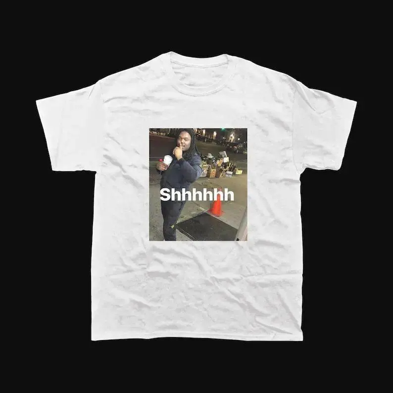 Elevate your casual wardrobe with this iconic viral "Shhhhhhh" meme graphic t-shirt, a must-have for anyone who loves relatable internet humor and trendy street style. This classic black tee features a bold, eye-catching print of the viral street photo paired with the playful "Shhhhhhh" text, turning a beloved internet moment into a wearable conversation starter that turns heads everywhere you go.