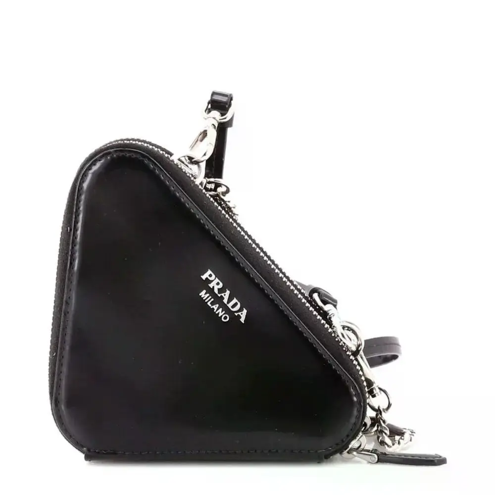 Pre-owned PRADA Leather Shoulder Bags Mini Triangle Bag , purse, Pouch, Black Nappa leather