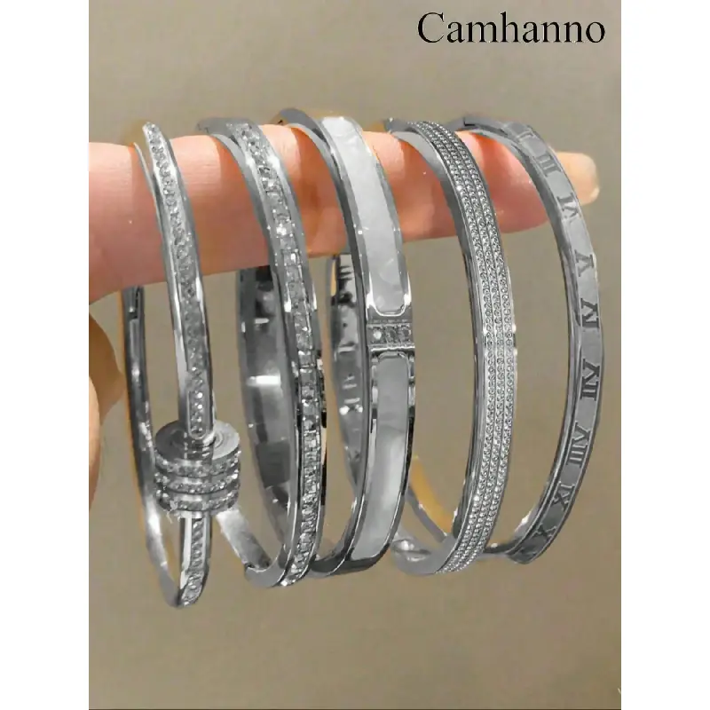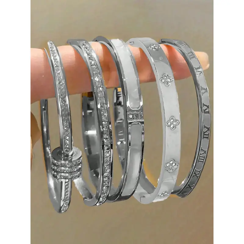 Elegant Stainless Steel Bangle Set, Trendy Stack Bangle, 5-Piece Fashionable Bracelet Classic Design, Perfect for Daily Wear & Special Occasions