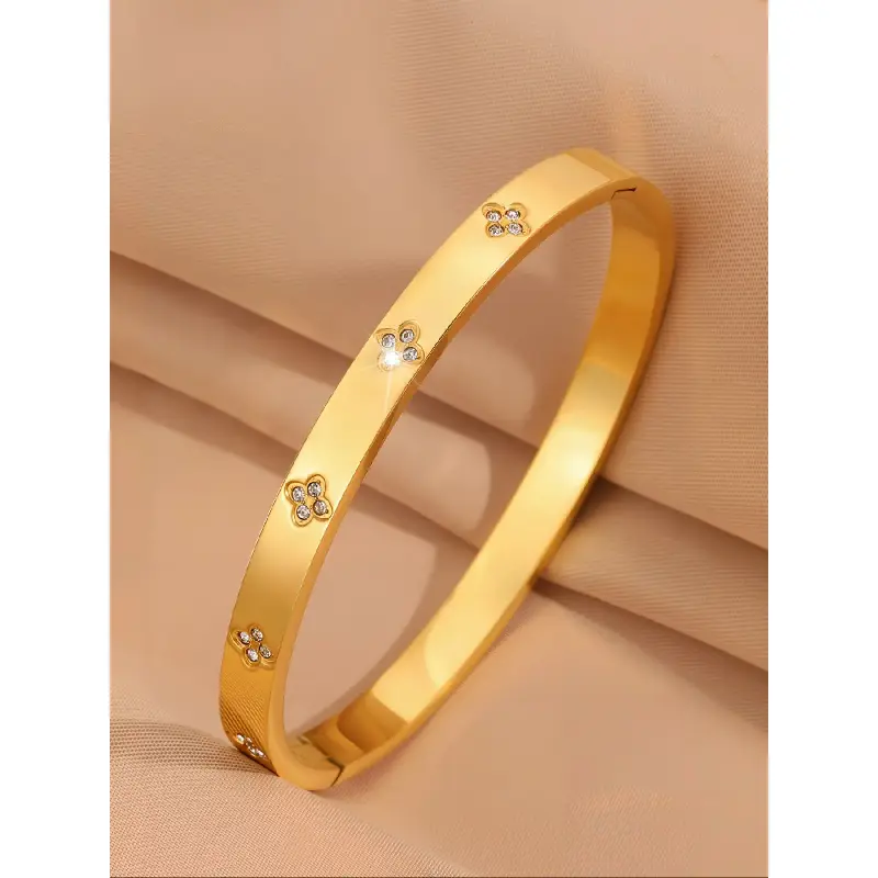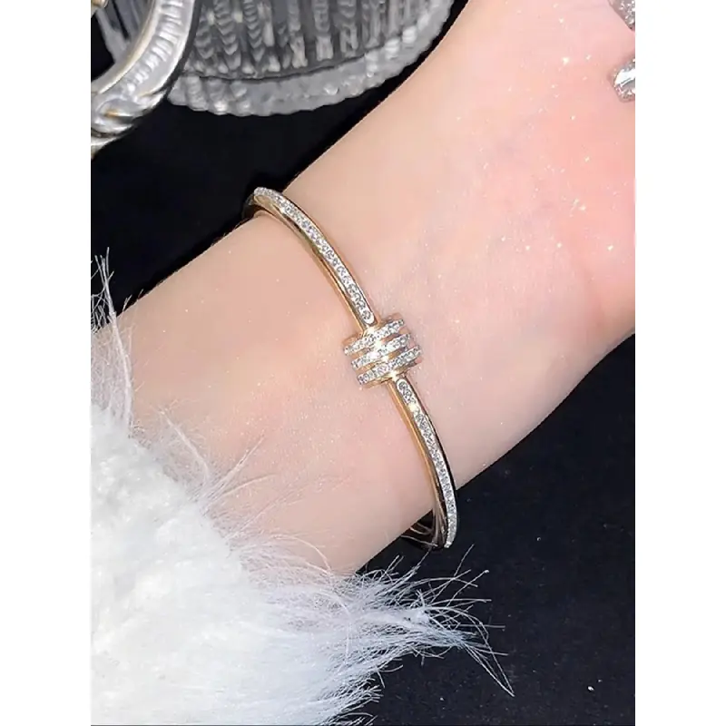 PAVOI 14K Gold Plated Cubic Zirconia Bangle Tennis Bracelets for Women - Classic Love Cuff Bangle Bracelets