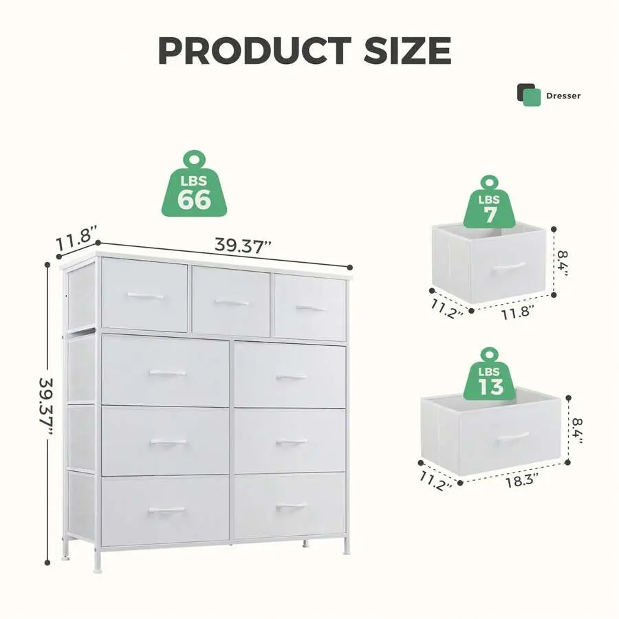 Large Capacity: A great volume of storage with 9 separate drawers provides endless organizational possibilities.The upper drawer can store your frequently used items, and the lower drawer can store various unused or infrequently used items.With plentiful space to organize all your belongings, your room will always be kept in perfect order.Overall Size: 39.37" L x 11.8" W x 39.37" H. Big drawer size: 11.2" L x 18.3" W x 8.4" H. Small drawer size: 11.2" L x 11.8" W x 8.4" H.