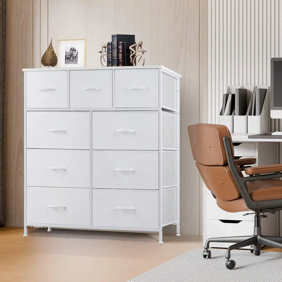 Multifunction Dresser:Designed as a vertical dresser, this 9 drawer fabric tower slides effortlessly into bedrooms, kids' playrooms, entryways or dorm corners.Neutral tones blend seamlessly with the entire storage collection, letting you build a matching, clutter-free suite across any space.